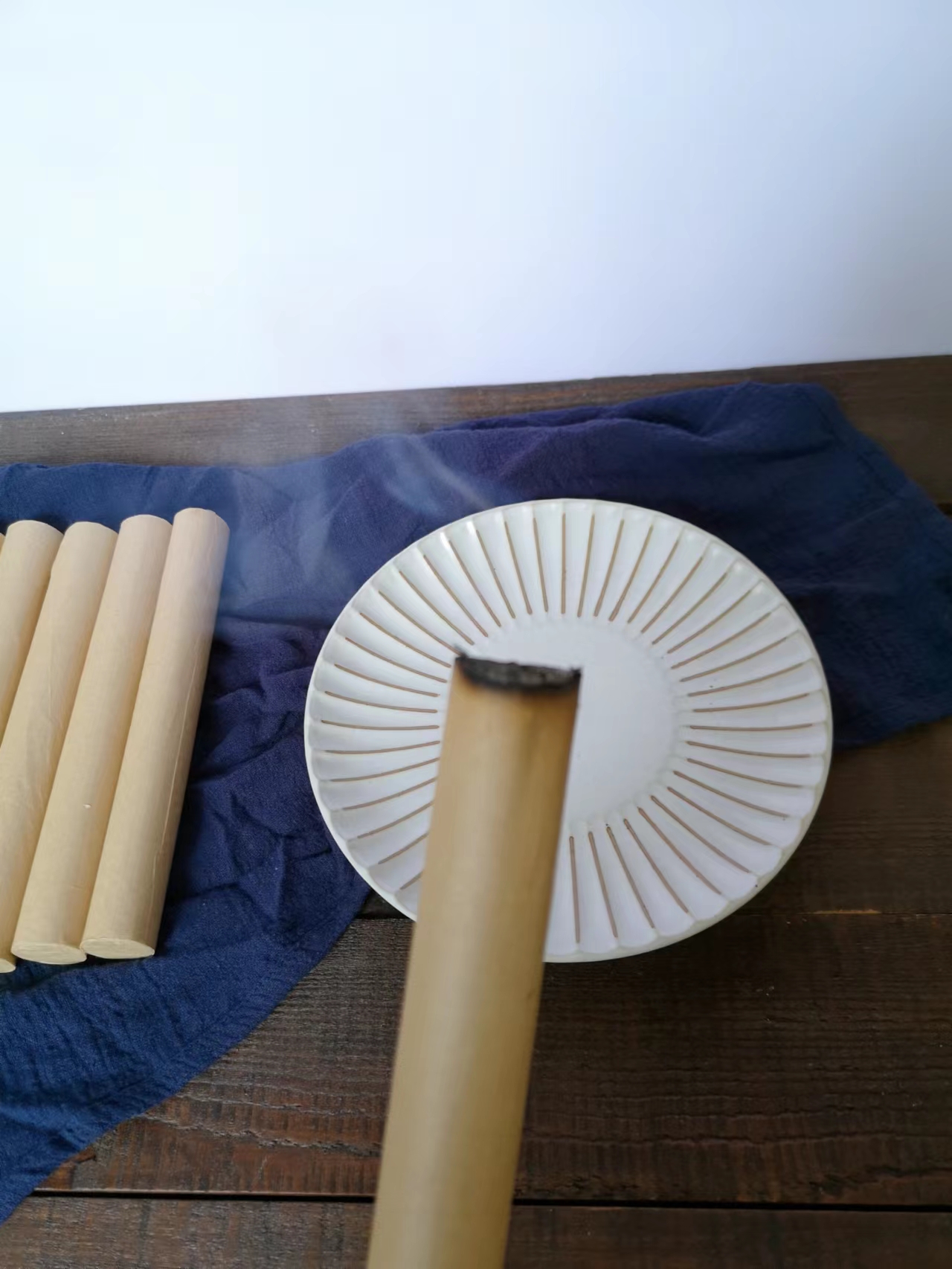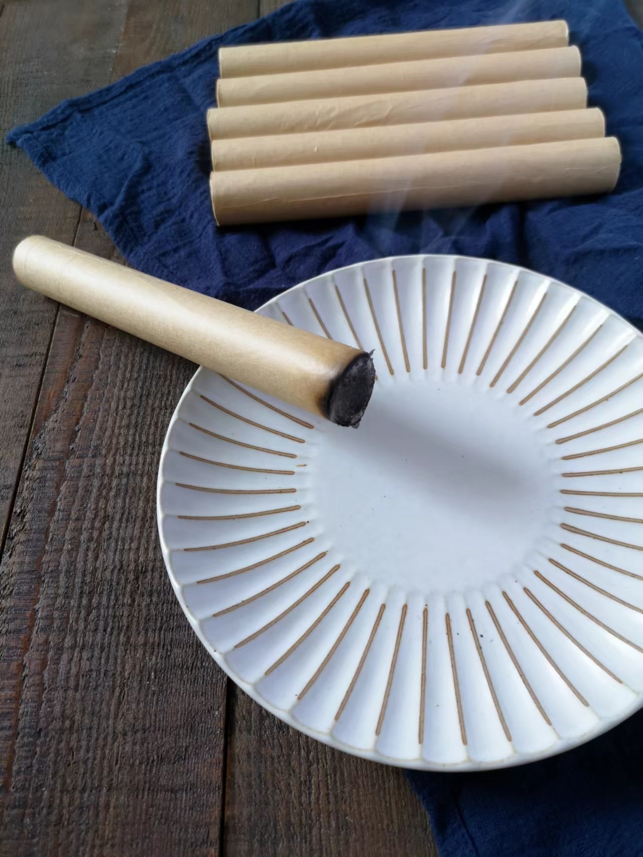 这款艾条点燃后我们专门用盘子接着,艾灰的确是不容易掉的。