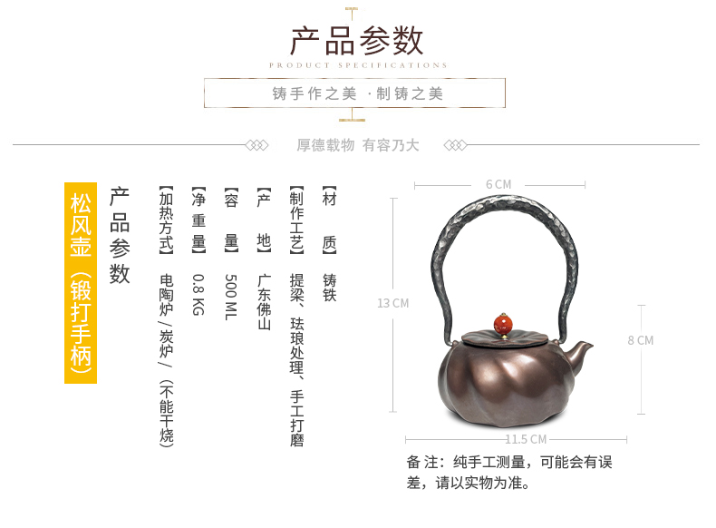 铸味 | 0.5L松风壶铸铁茶壶生铁壶泡茶壶煮水壶手工铸造电磁炉适用