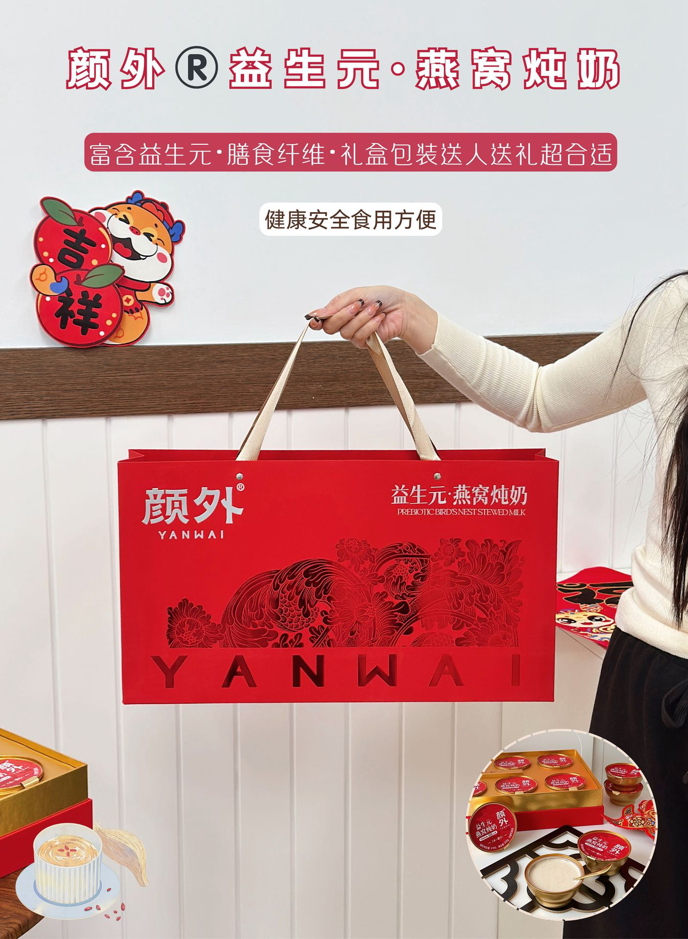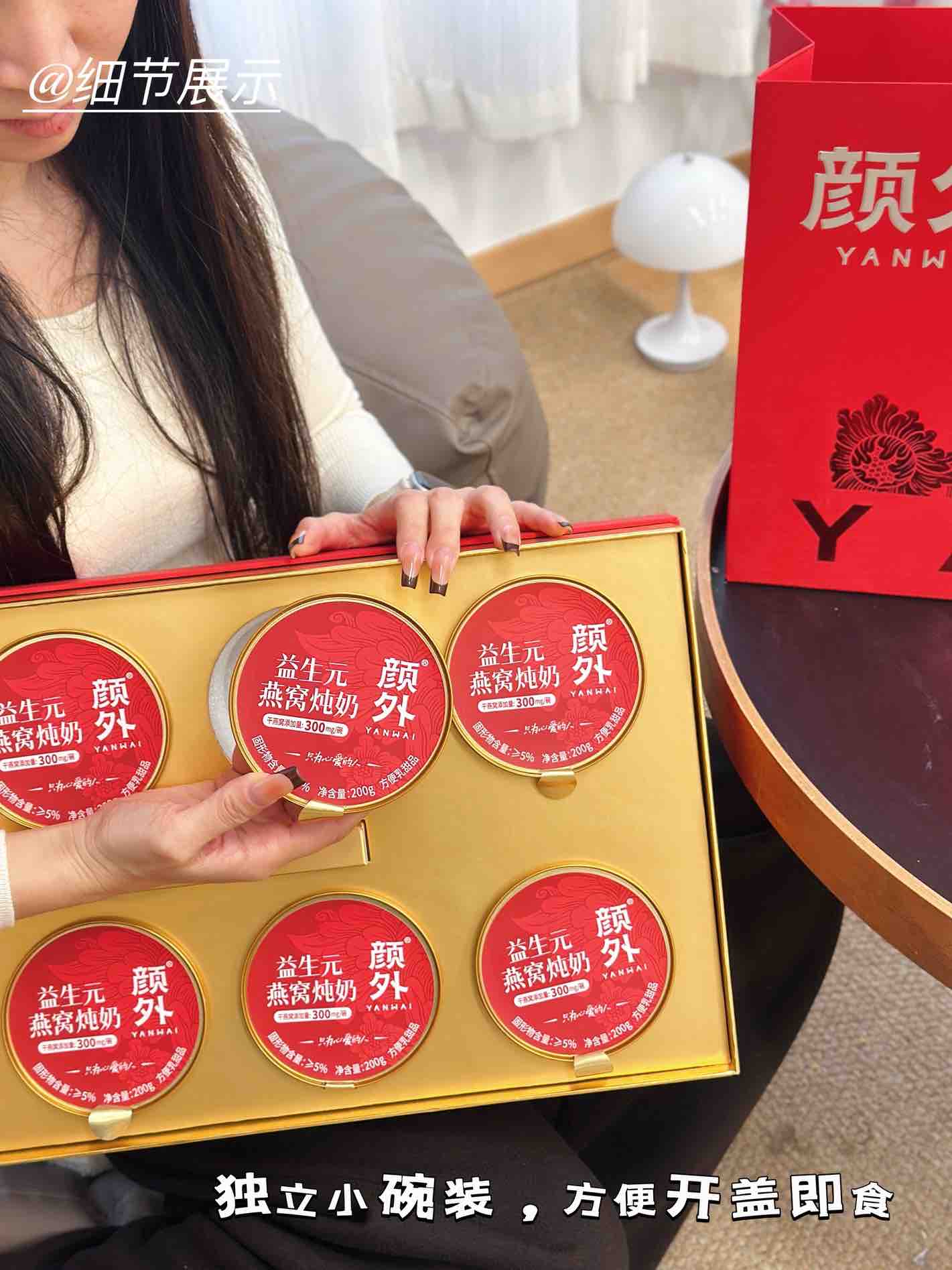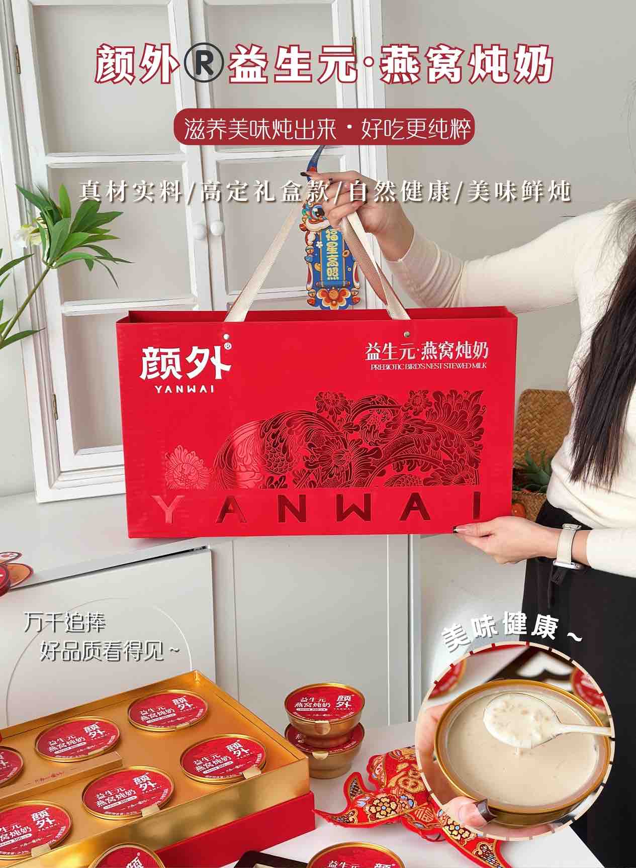 【新年好礼】石家庄优选仓库速达,颜外®益生元·燕窝炖奶,“益生元+燕窝”的组合,既有燕窝的柔润口感, 又带着奶香的清甜~ 200克*8碗/礼盒装