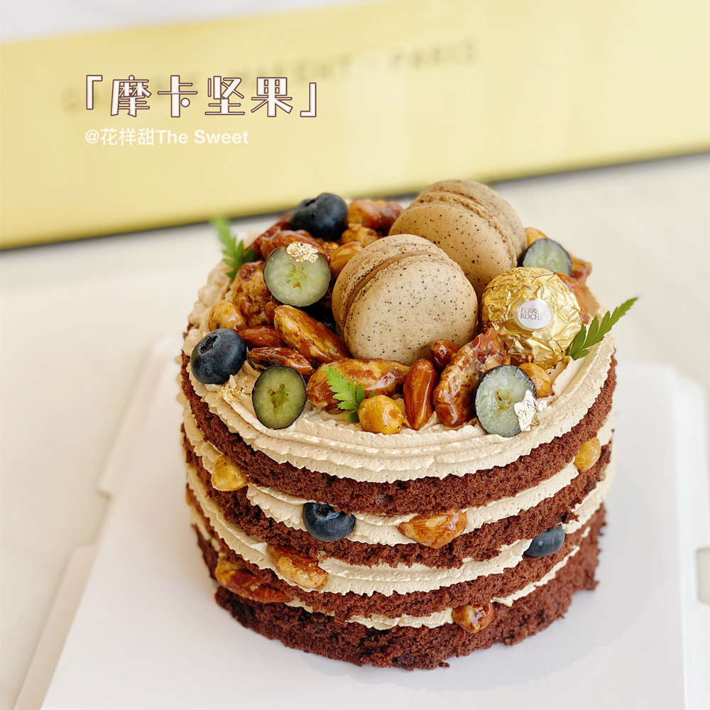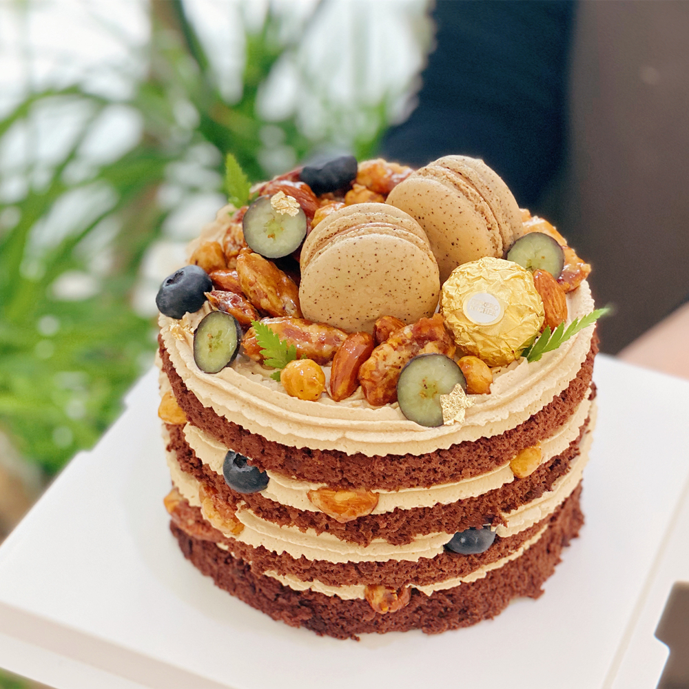 摩卡咖啡坚果 · 奶油蛋糕(为造型稳定,外层奶油需用到食品级塑料围边包裹)