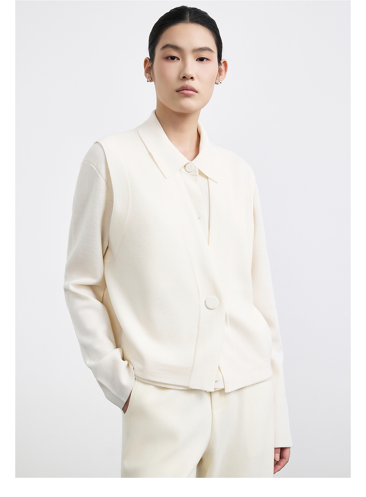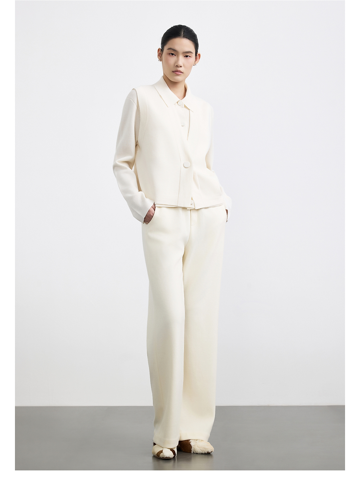 商场同款PURE TOUCH女装25冬新款绵羊毛针织开衫马甲一粒扣毛背心