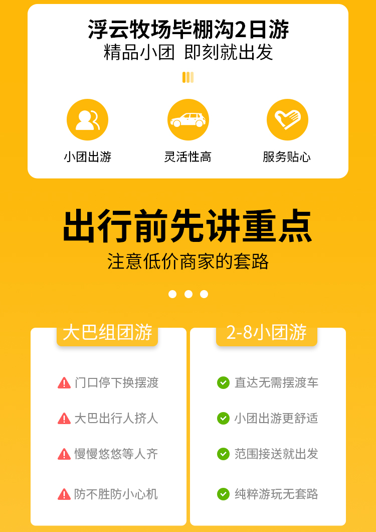 浮云牧场+毕棚沟私家深度纯玩2日游(每团8人封顶+别墅级酒店+网红无边泳池+高山温泉+全程无自费)