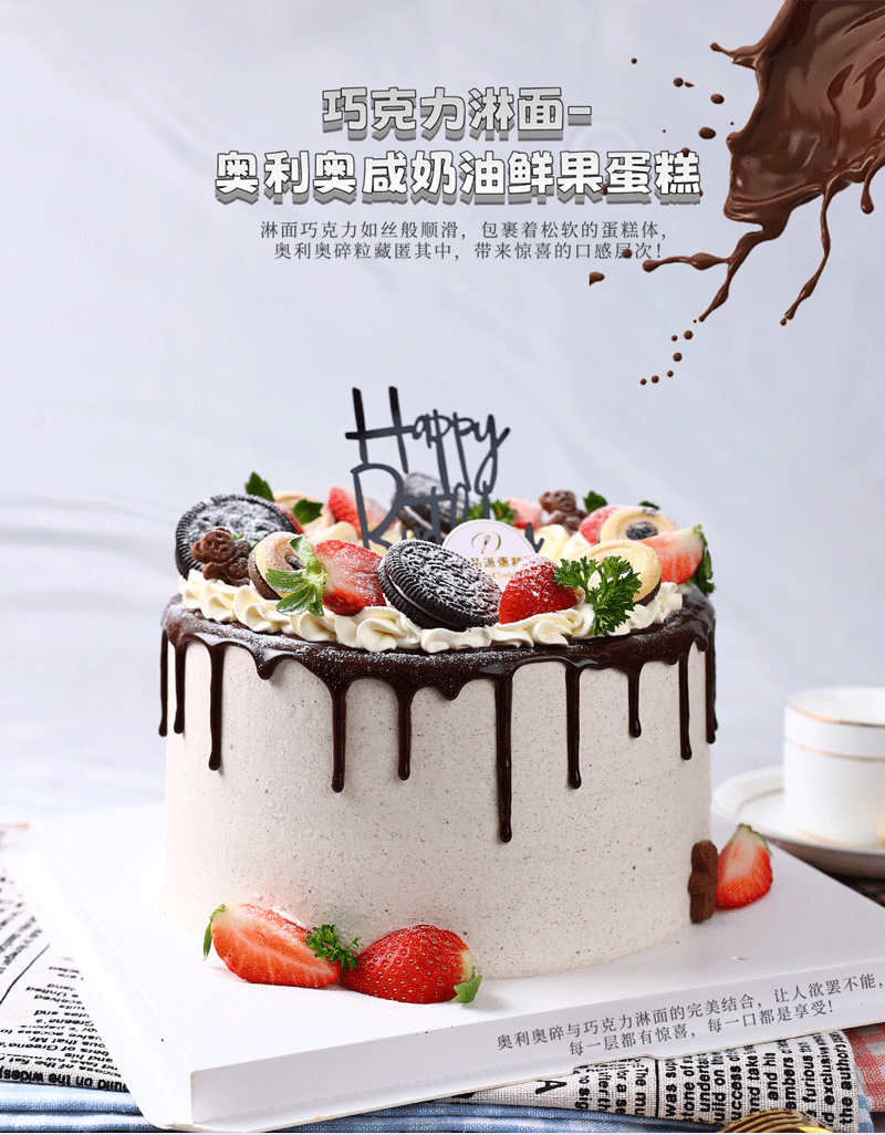 【咸奶油口味】巧克力淋面- 奥利奥咸奶油鲜果蛋糕,甜蜜新宠,颠覆你的味觉体验!【惠州】