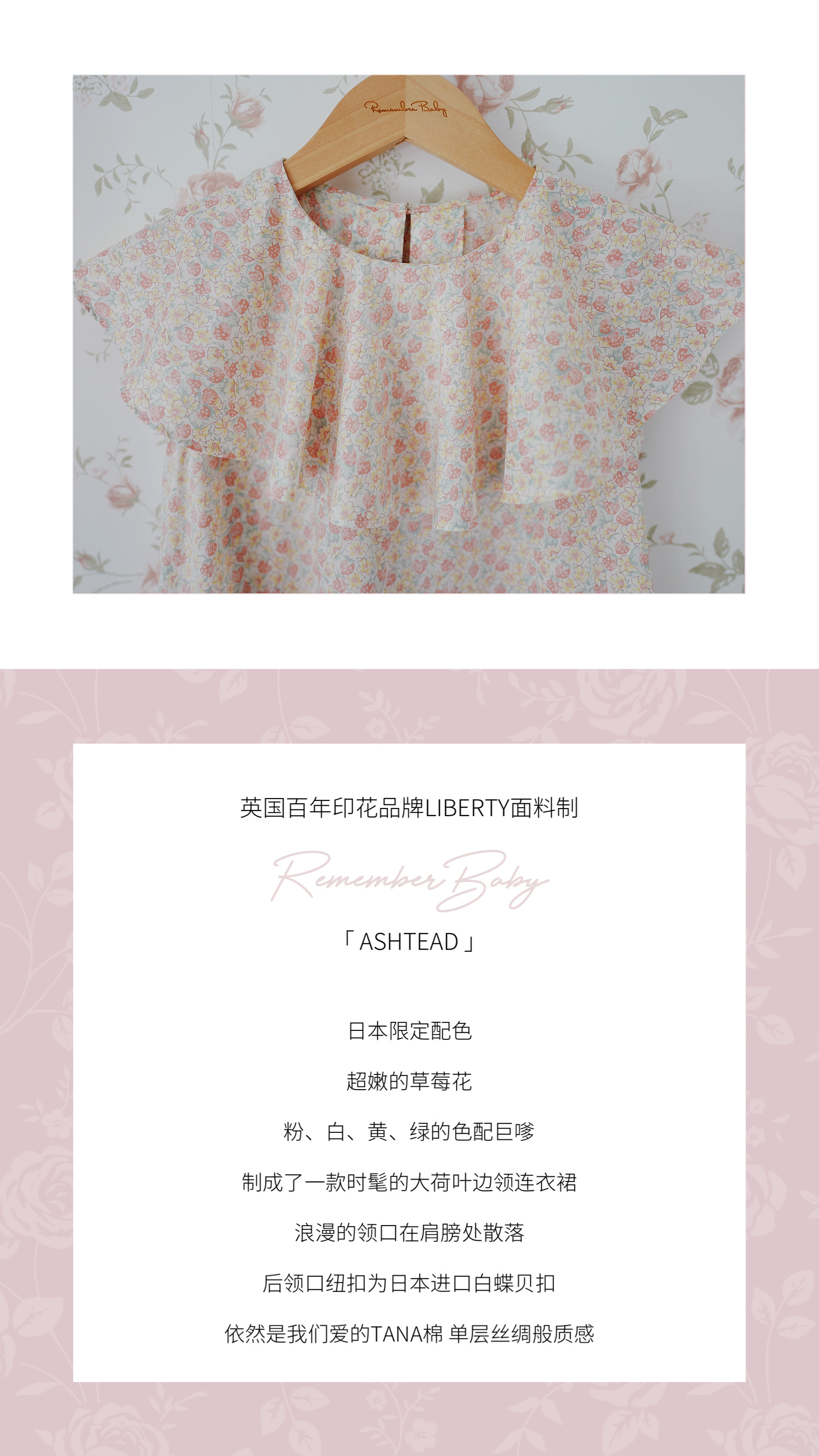 现货 / ASHTEAD | 英国百年品牌LIBERTY面料制 草莓花 荷叶边连衣裙 亲子款
