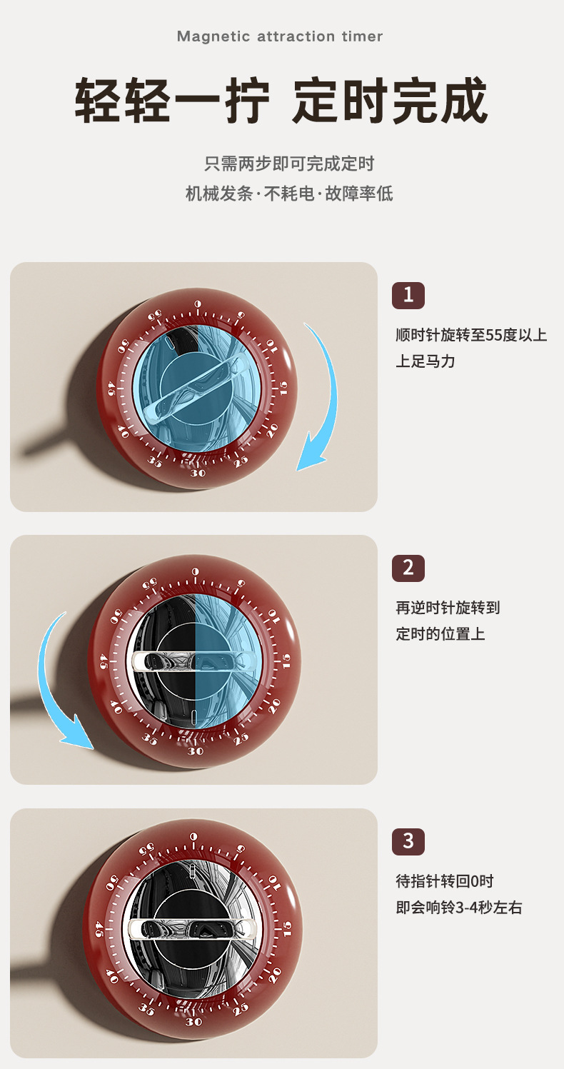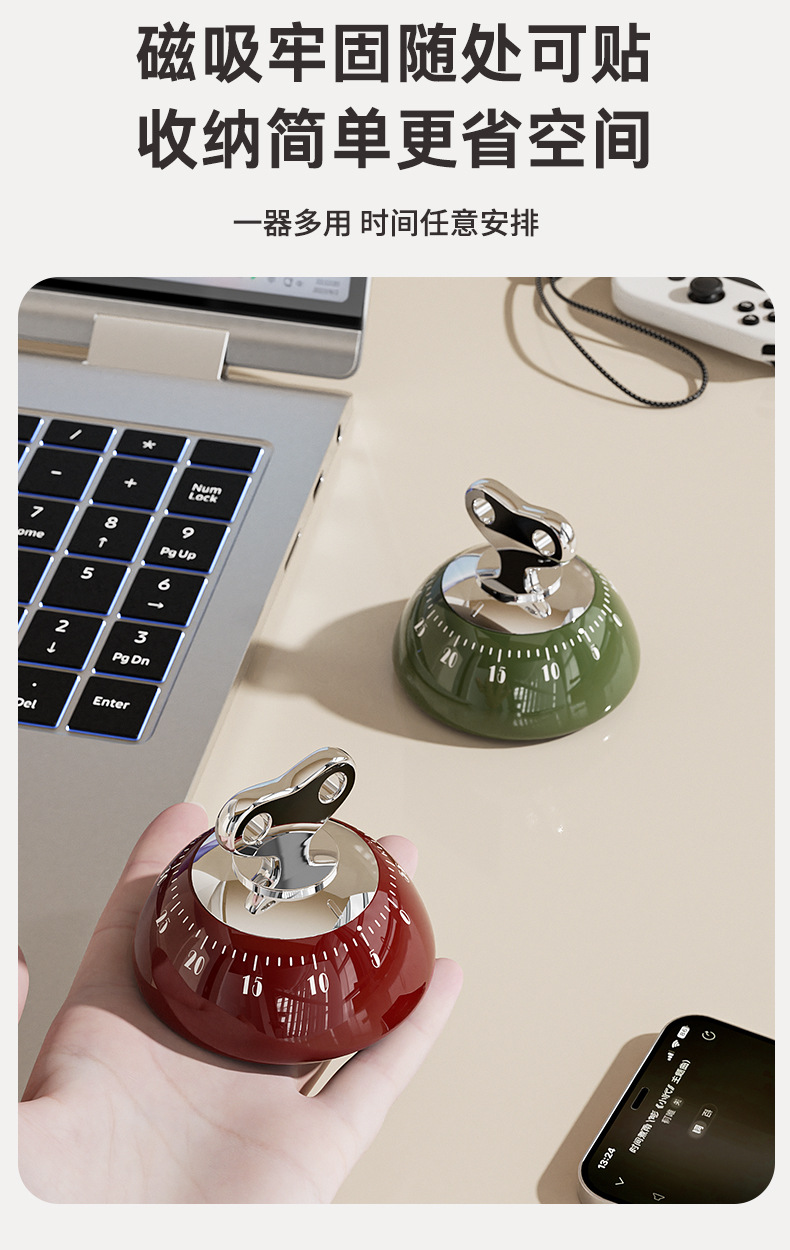 【机械不锈钢 磁吸多用计时器!】厨房计时器 做饭提醒器 小学生自律神器 时间管理机械闹钟 磁吸定时器