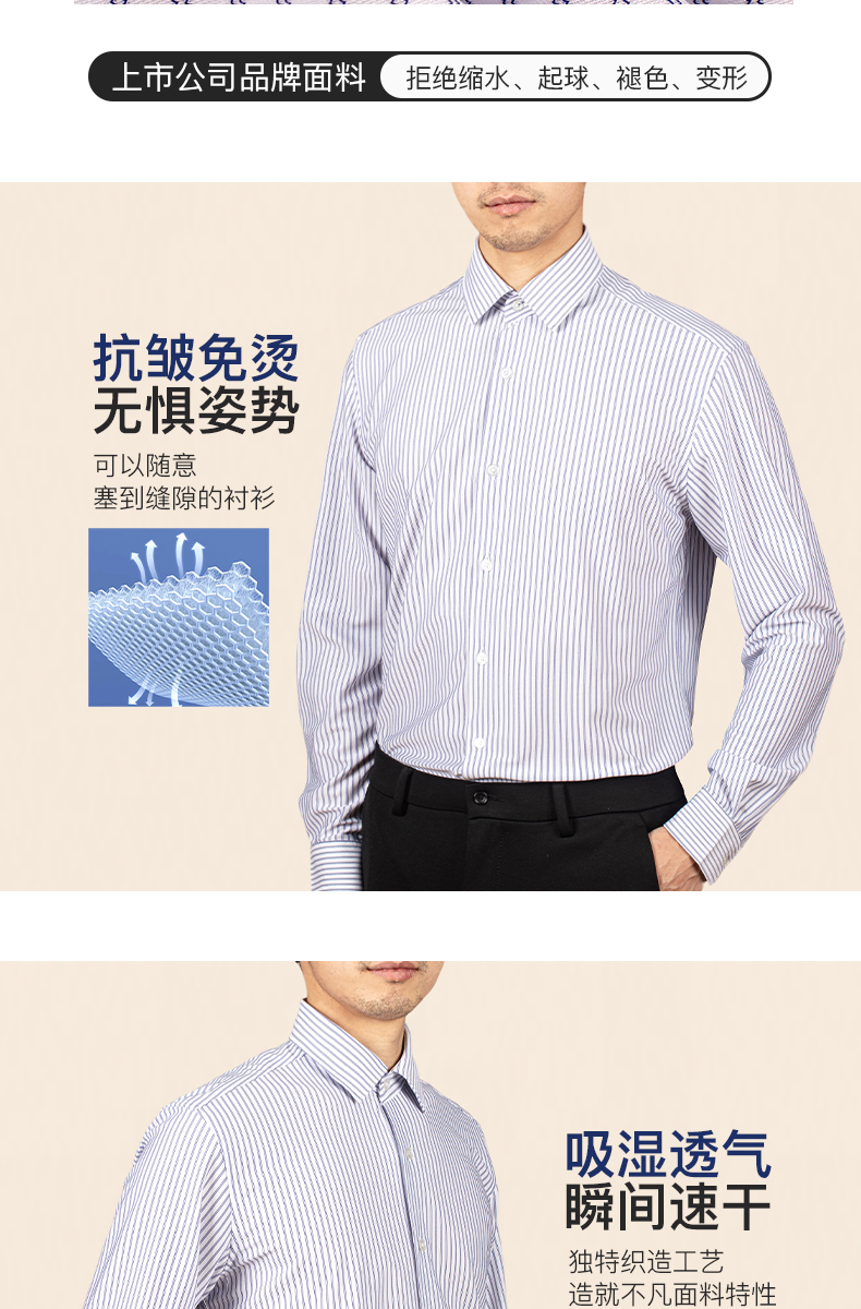 【限时特惠 2件/7.5折 商务出行免烫衬衫】秋冬季新款男士职场精英修身长袖免烫速干衬衣