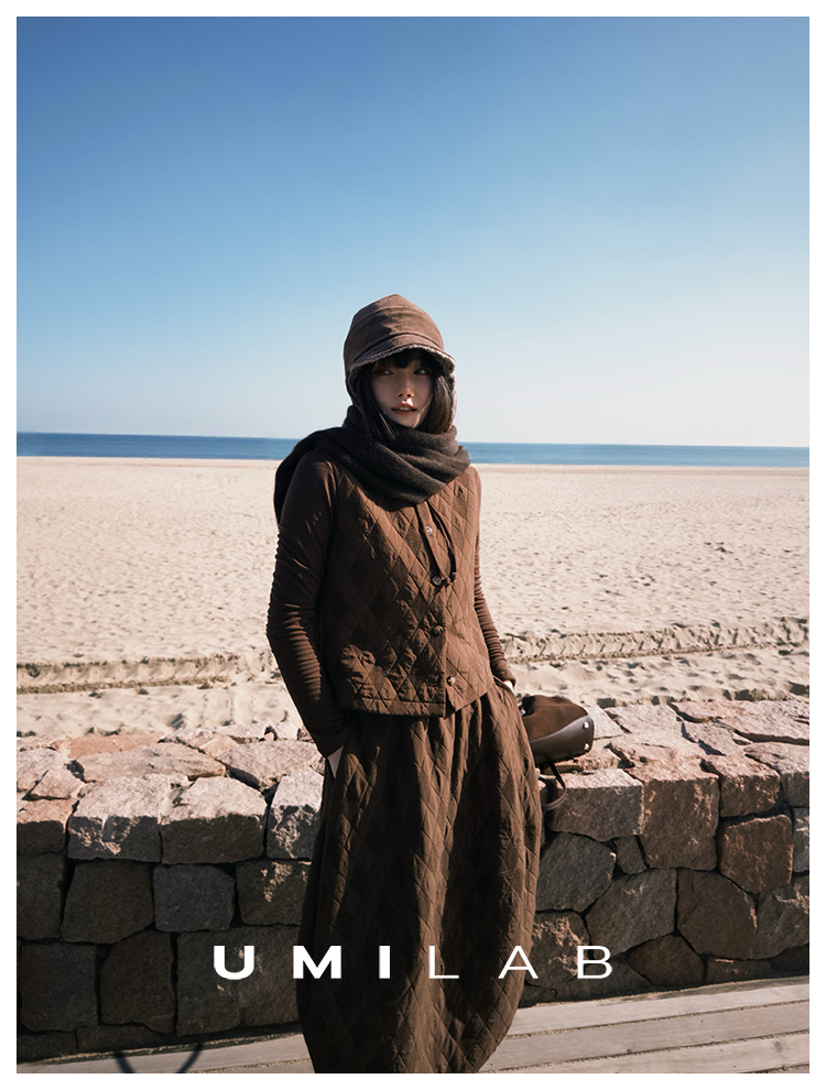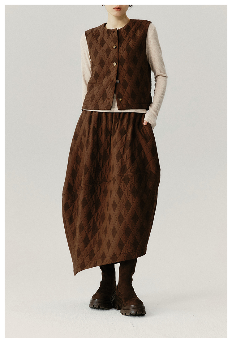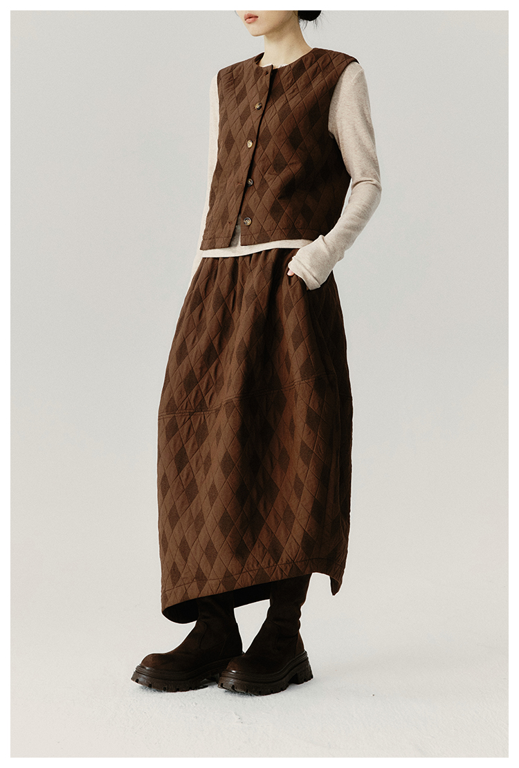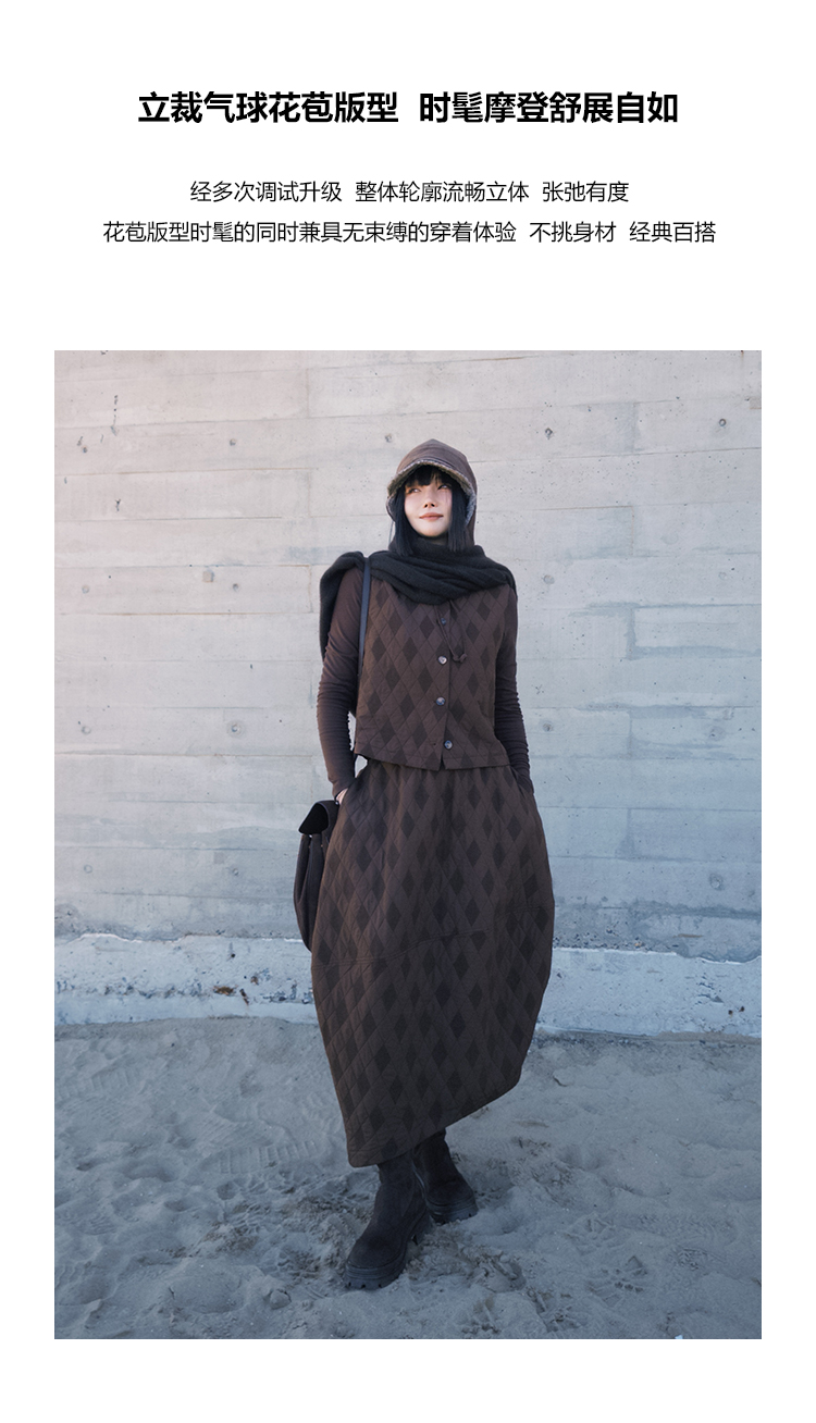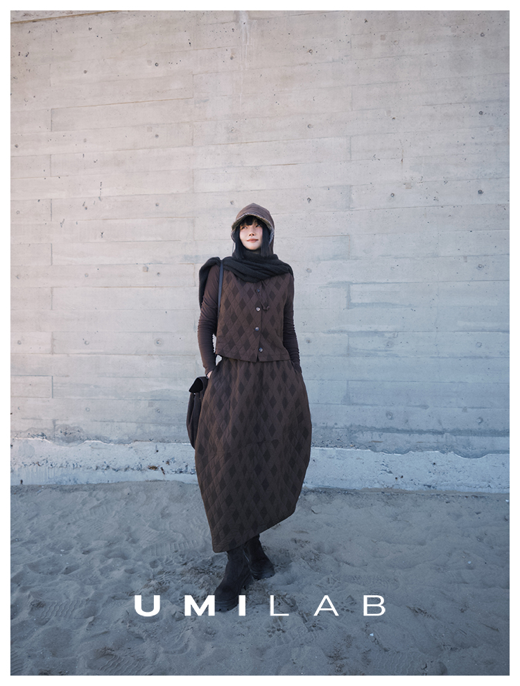 UMILAB|序格*个性小众 肌理感菱格棉面料 马甲/松紧花苞半裙E279W