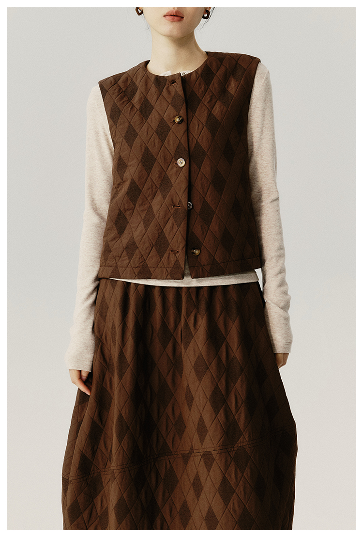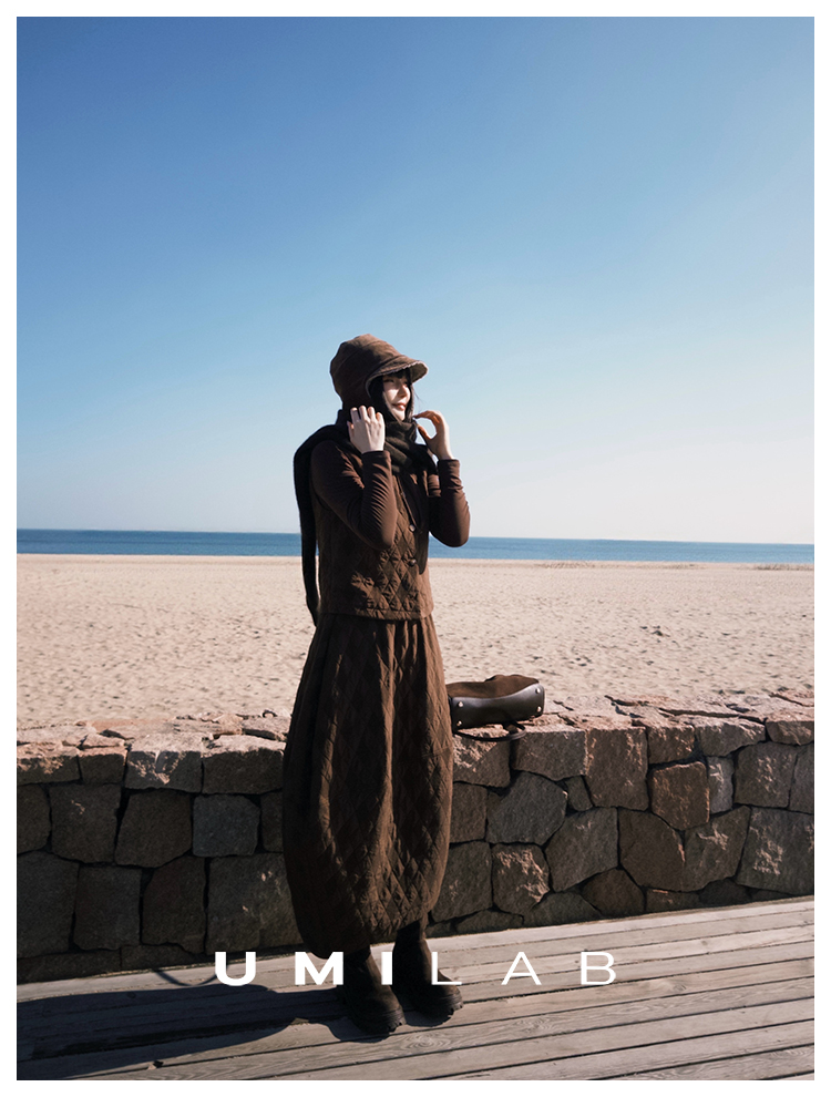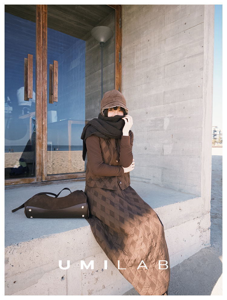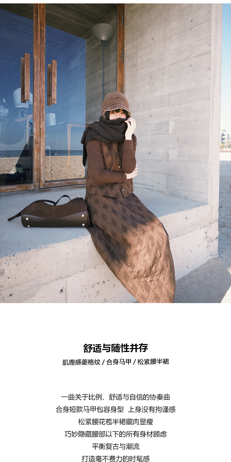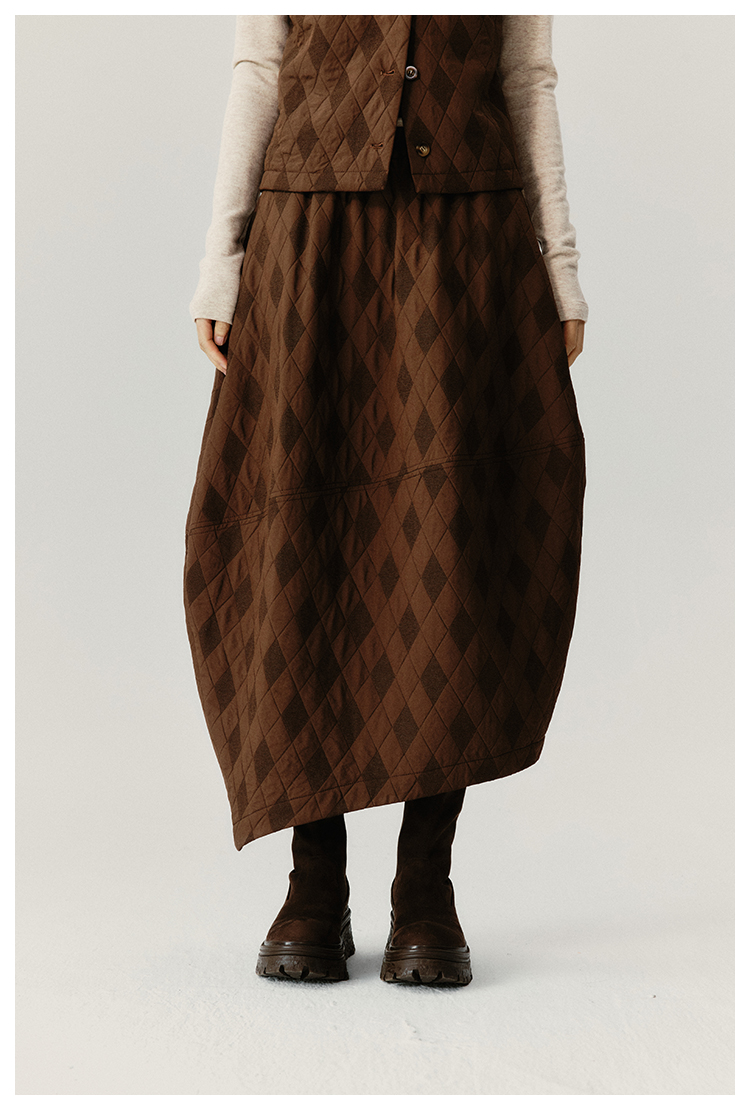 UMILAB|序格*个性小众 肌理感菱格棉面料 马甲/松紧花苞半裙E279W