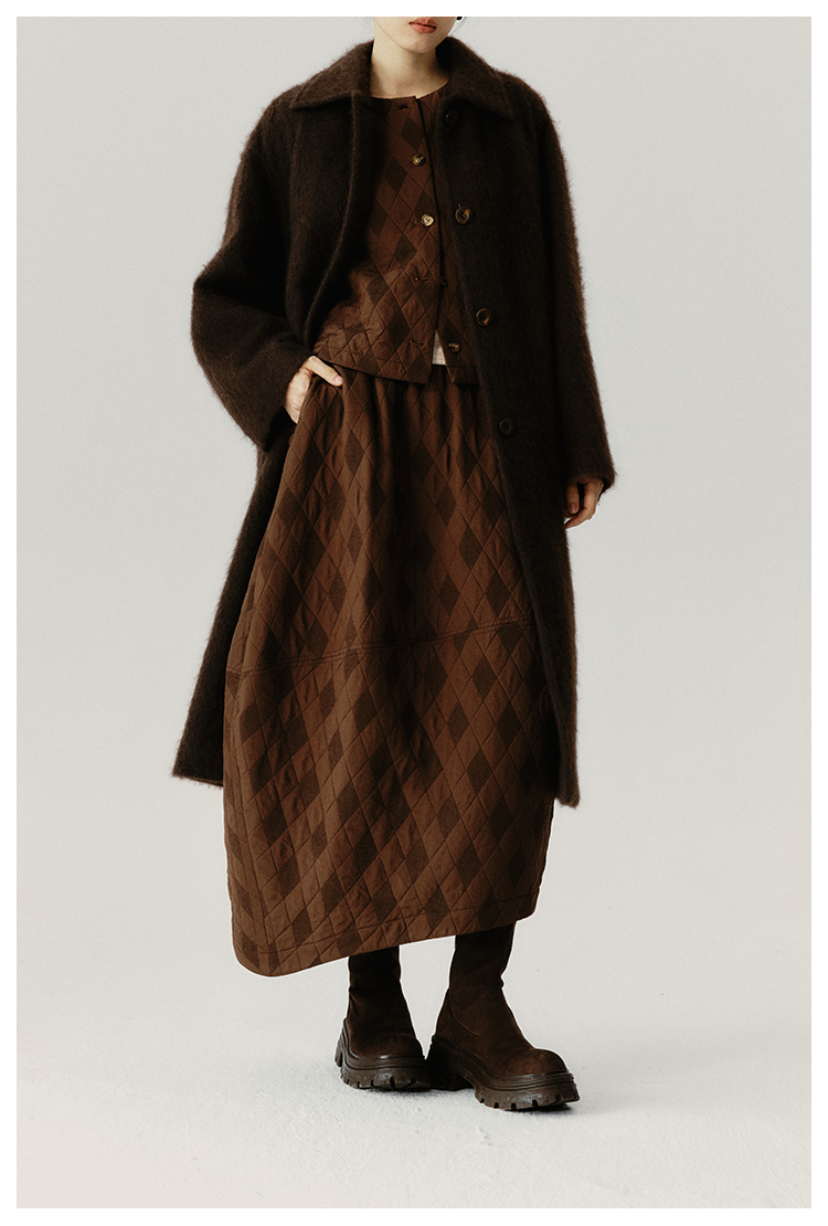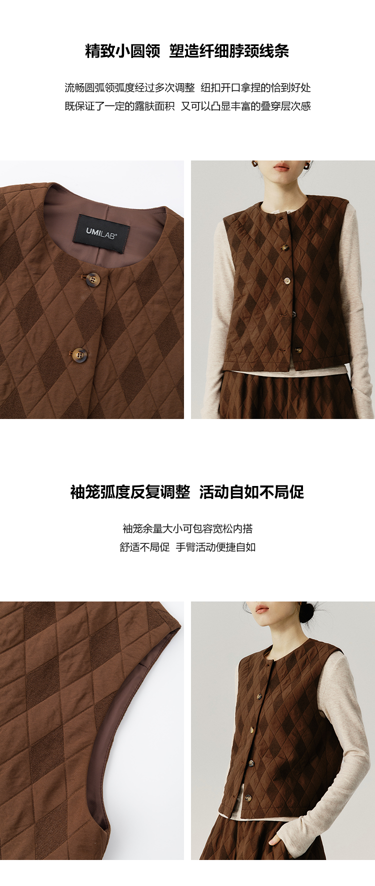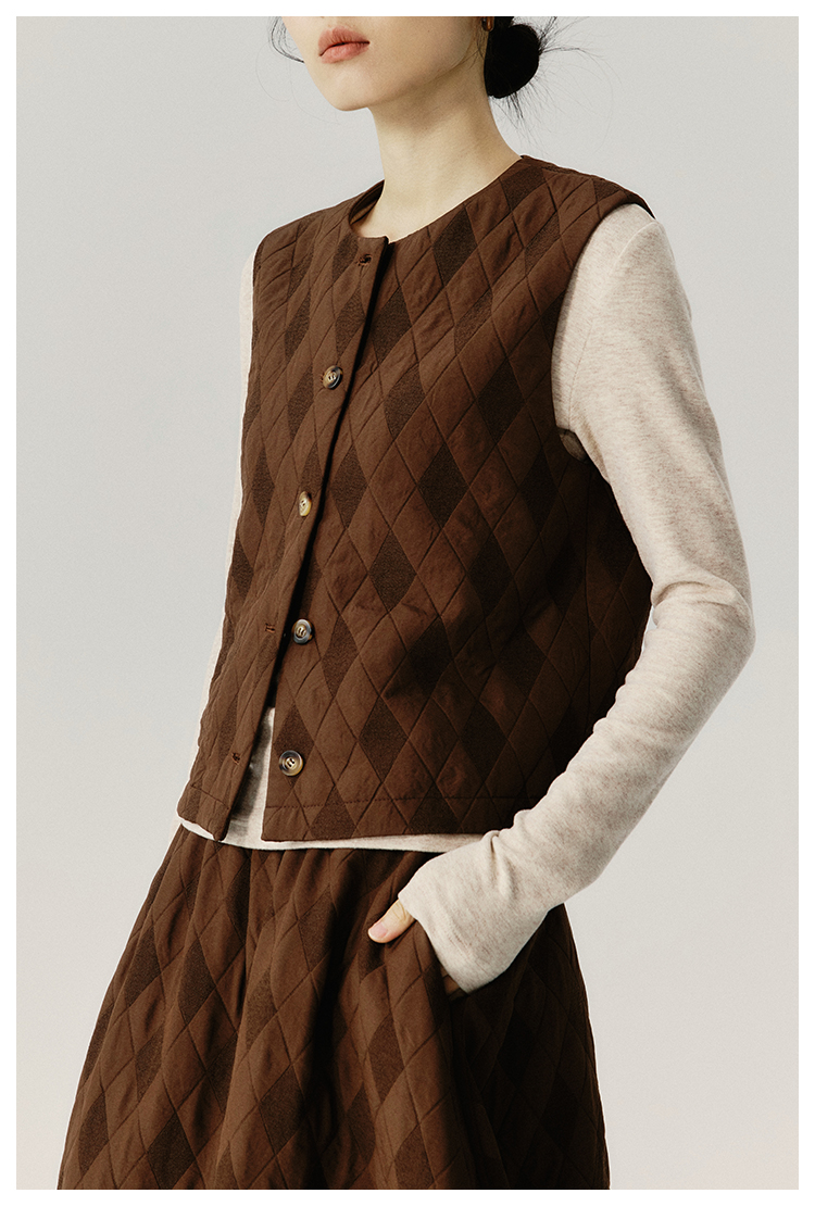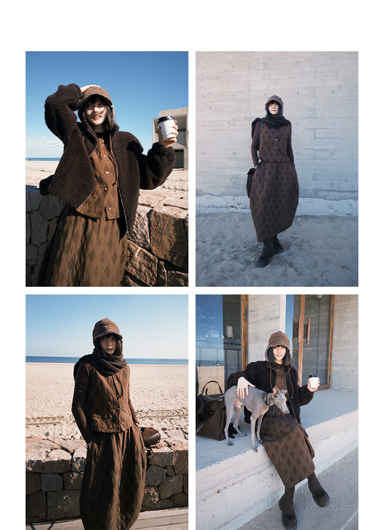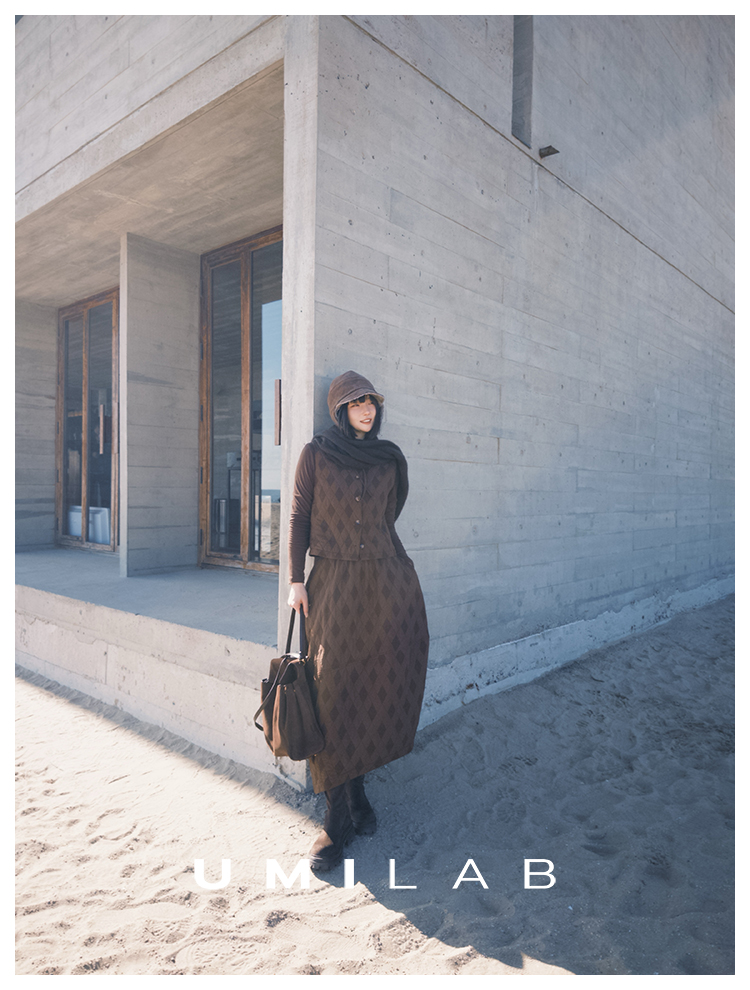 UMILAB|序格*个性小众 肌理感菱格棉面料 马甲/松紧花苞半裙E279W