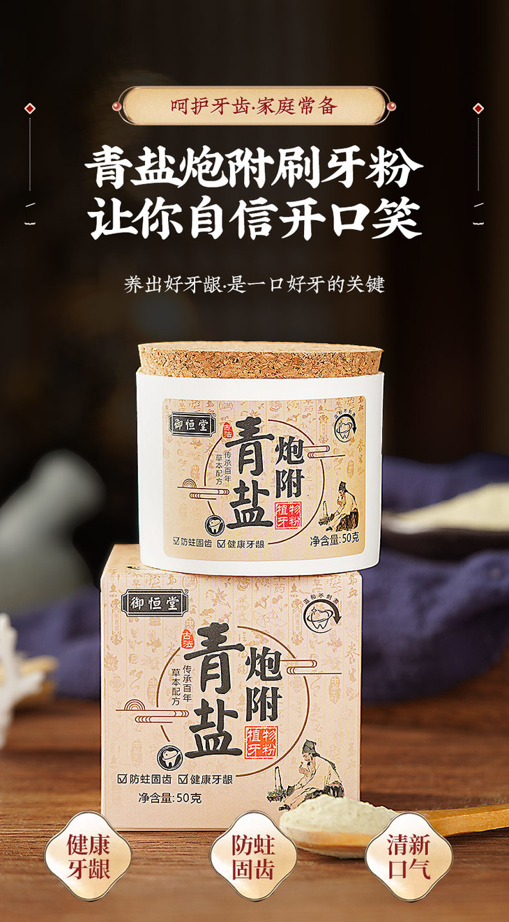 【买2送1 买3送2】御恒堂·炮附子青盐牙粉 源于古方 古法炮制 匠心研制 50g/盒