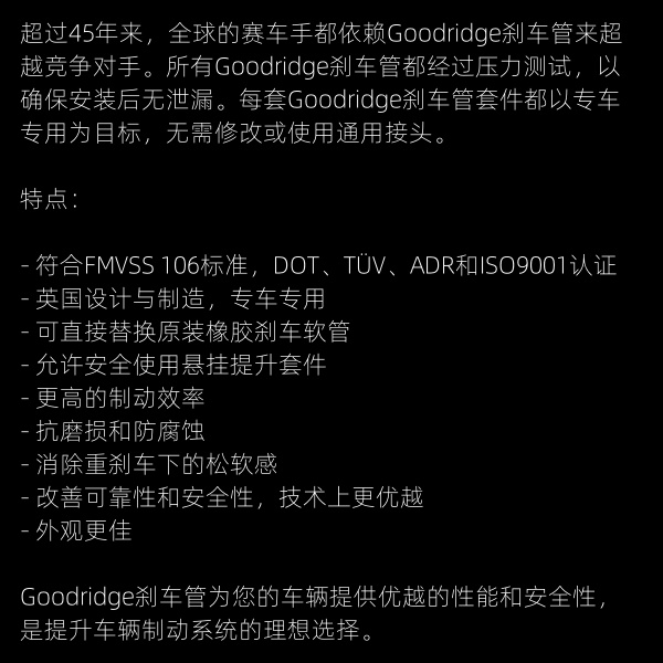 GD 刹车钢喉 英国 Goodridge 高性能刹车钢喉 英国原装进口 总代正品