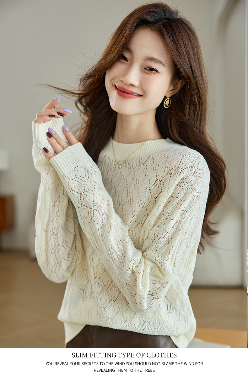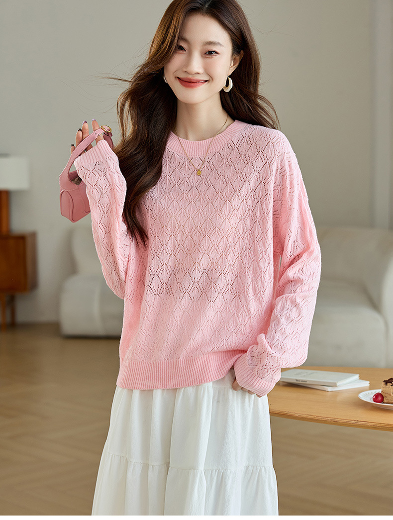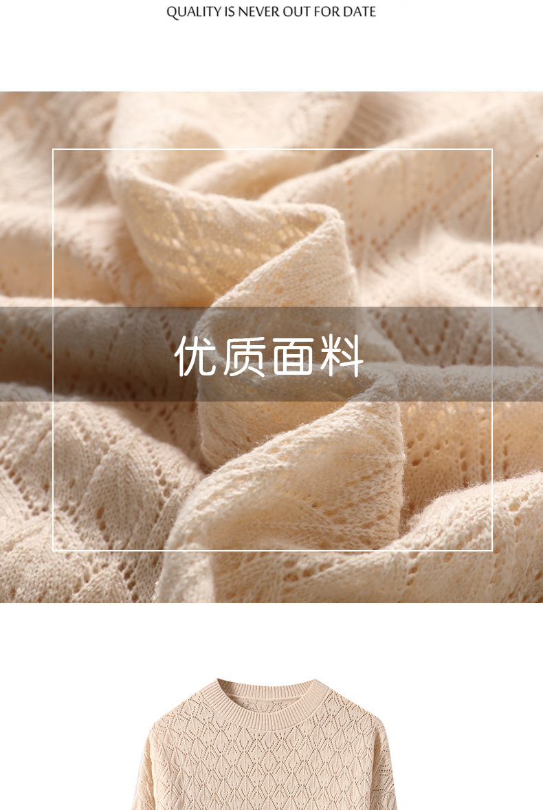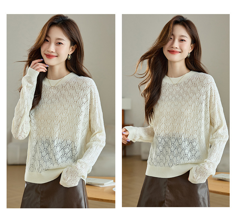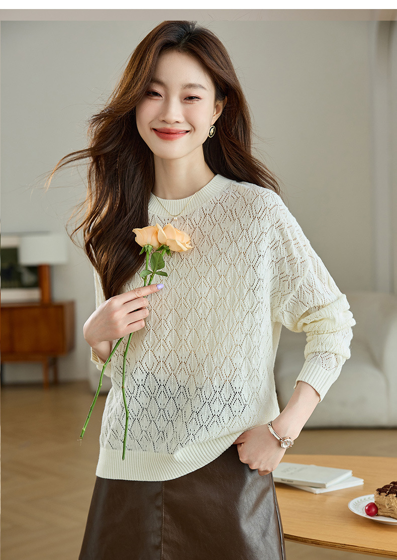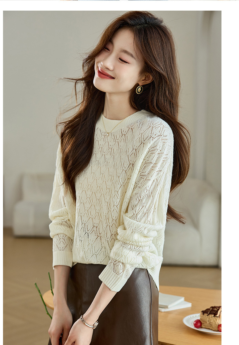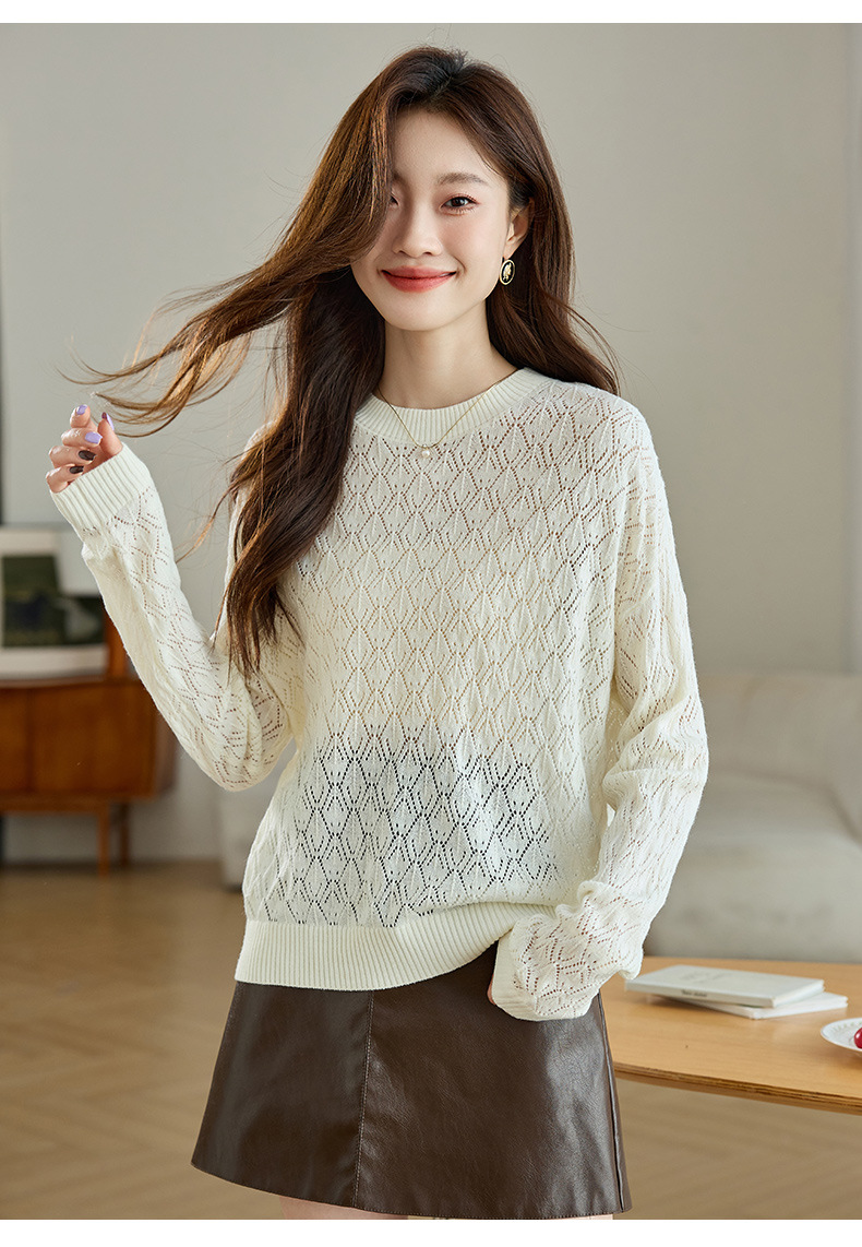 CC-AB1526镂空罩衫上衣长袖白色薄款针织衫2024春秋新款宽松慵懒风韩版线衣