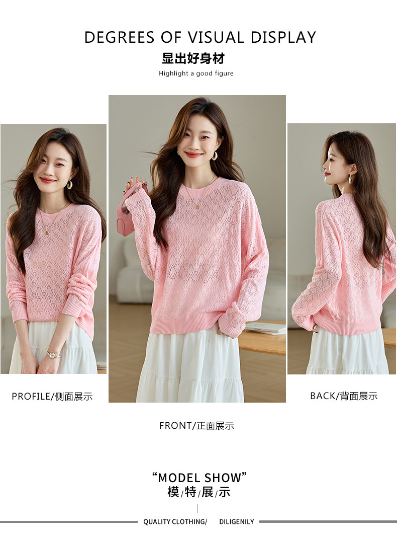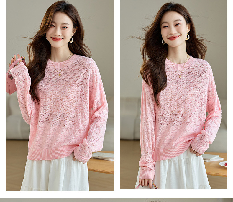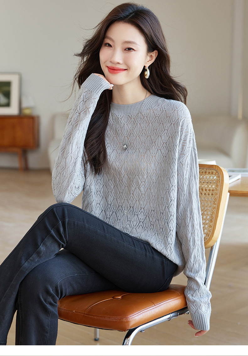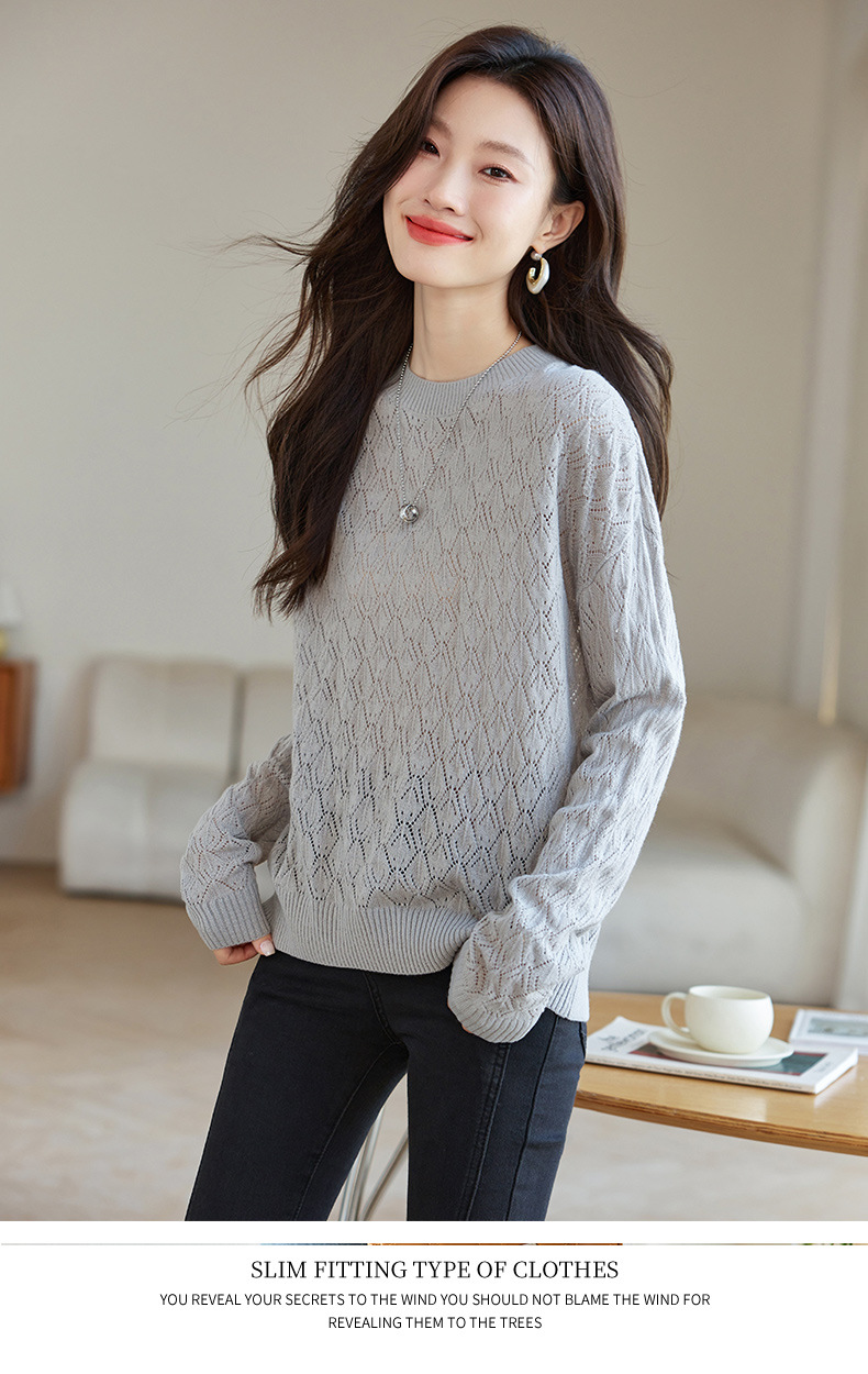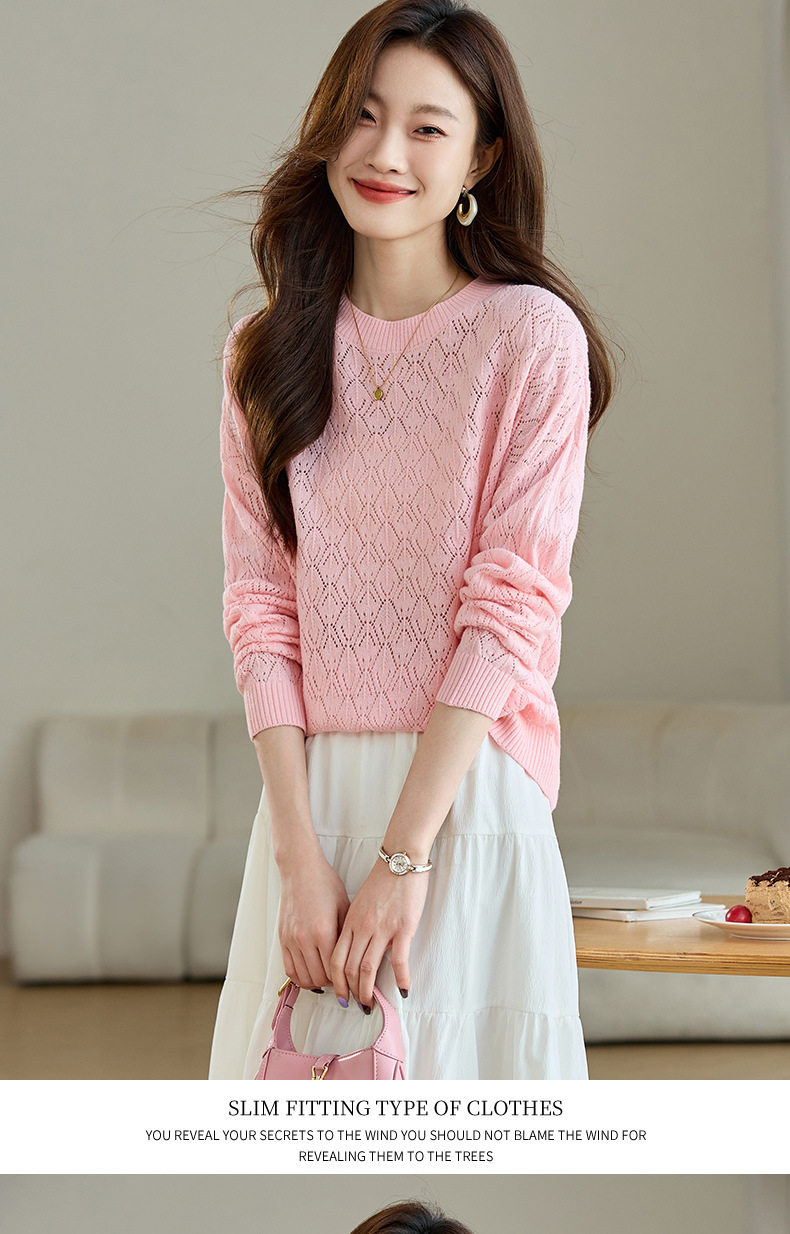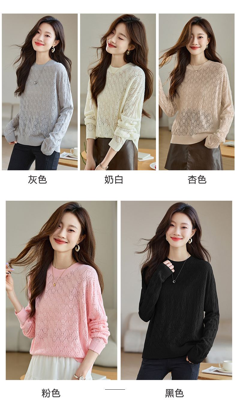 CC-AB1526镂空罩衫上衣长袖白色薄款针织衫2024春秋新款宽松慵懒风韩版线衣