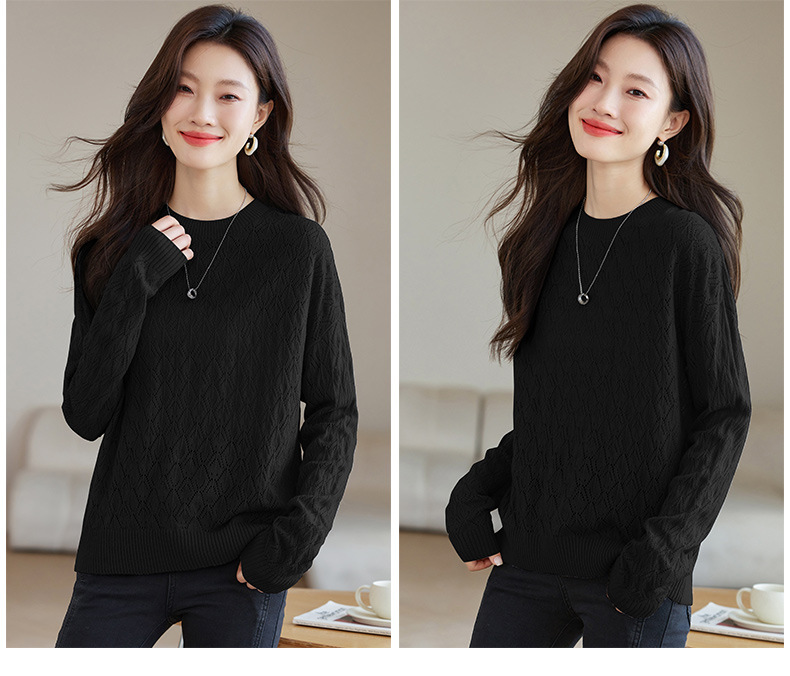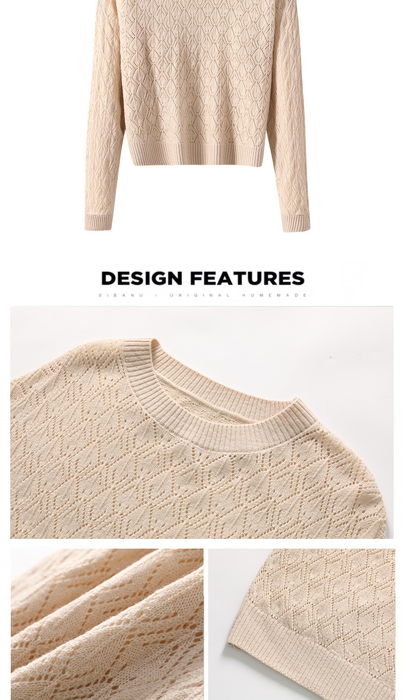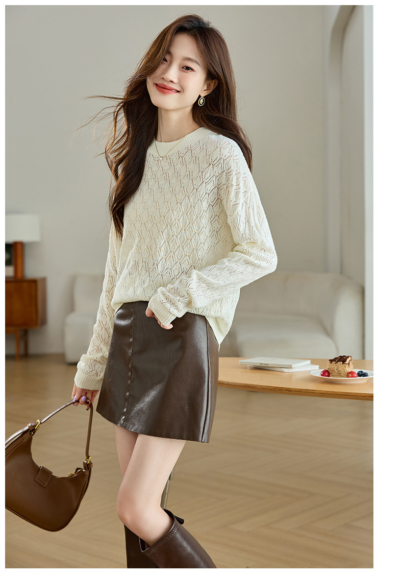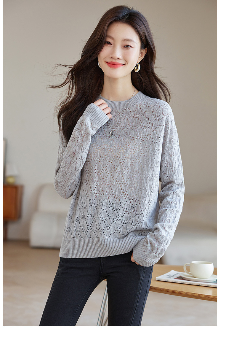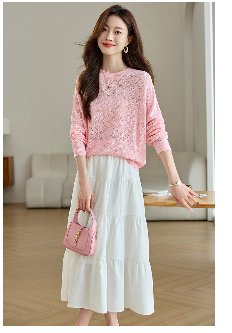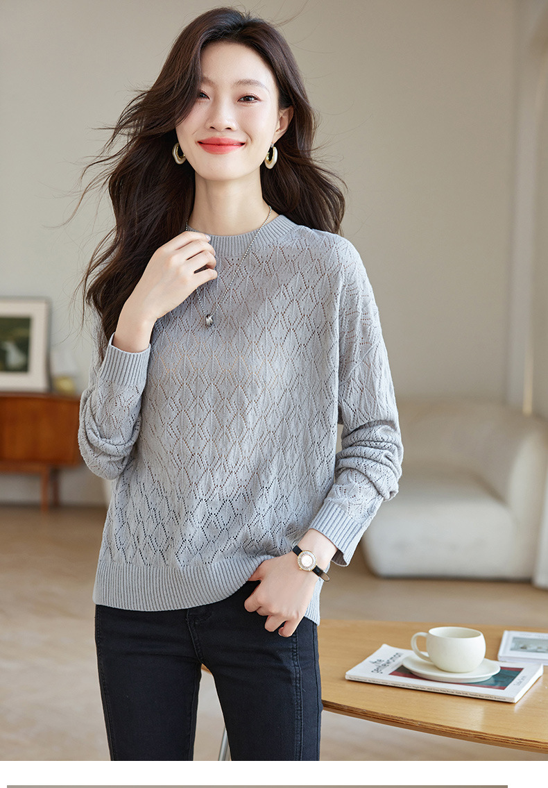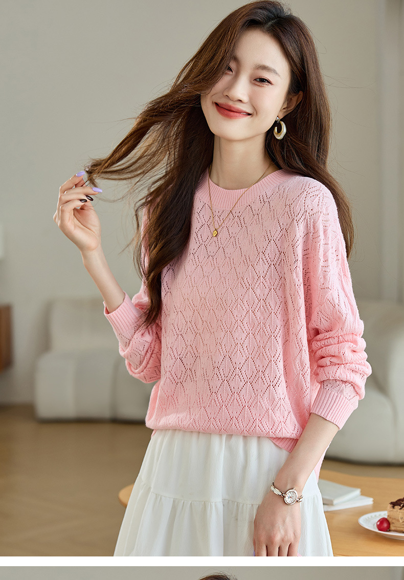 CC-AB1526镂空罩衫上衣长袖白色薄款针织衫2024春秋新款宽松慵懒风韩版线衣