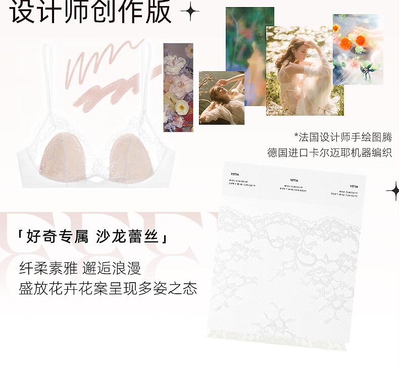 好奇蜜斯(Miss Curiosity)小胸法式内衣女性感无钢圈文胸罩套装大胸显小蕾丝纯欲薄 艾菲