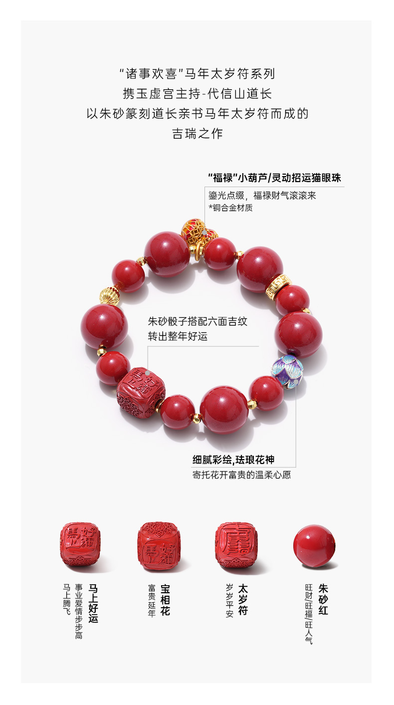 【马年太岁符 好运不打折】 钻石世家X心喜 诸事欢喜马年太岁符系列 马年太岁符朱砂手串 马年太岁符 六面吉文 朱砂骰子 好运翻倍【结缘定制、无质量问题不支持退换货】预计3-5天发货