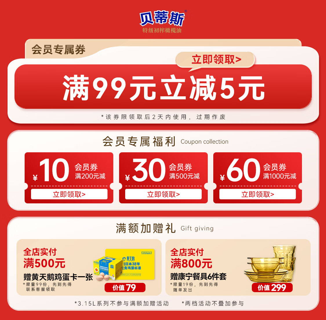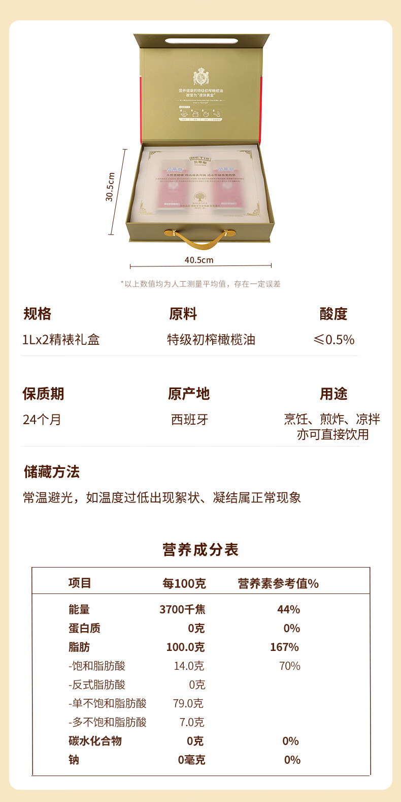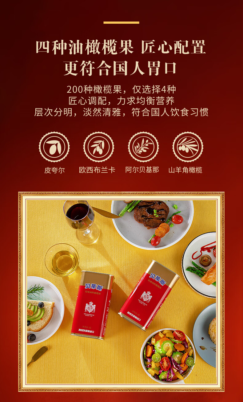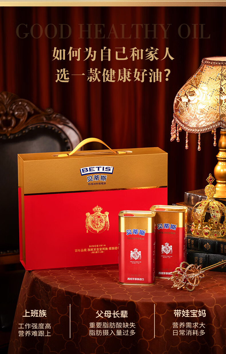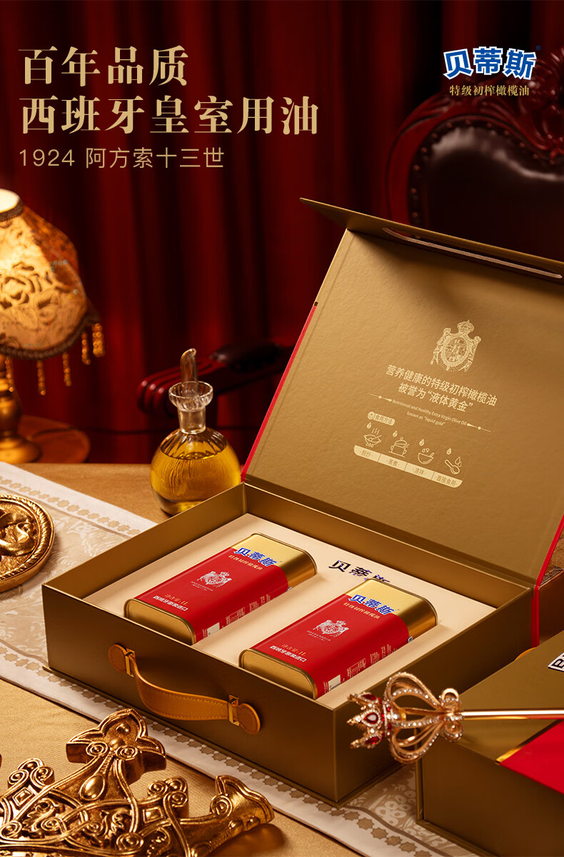 贝蒂斯(BETIS)特级初榨橄榄油1L*2礼盒 西班牙原装进口 团购送礼