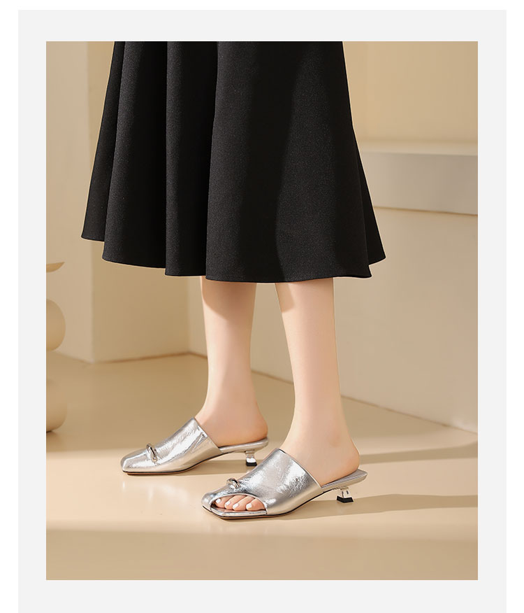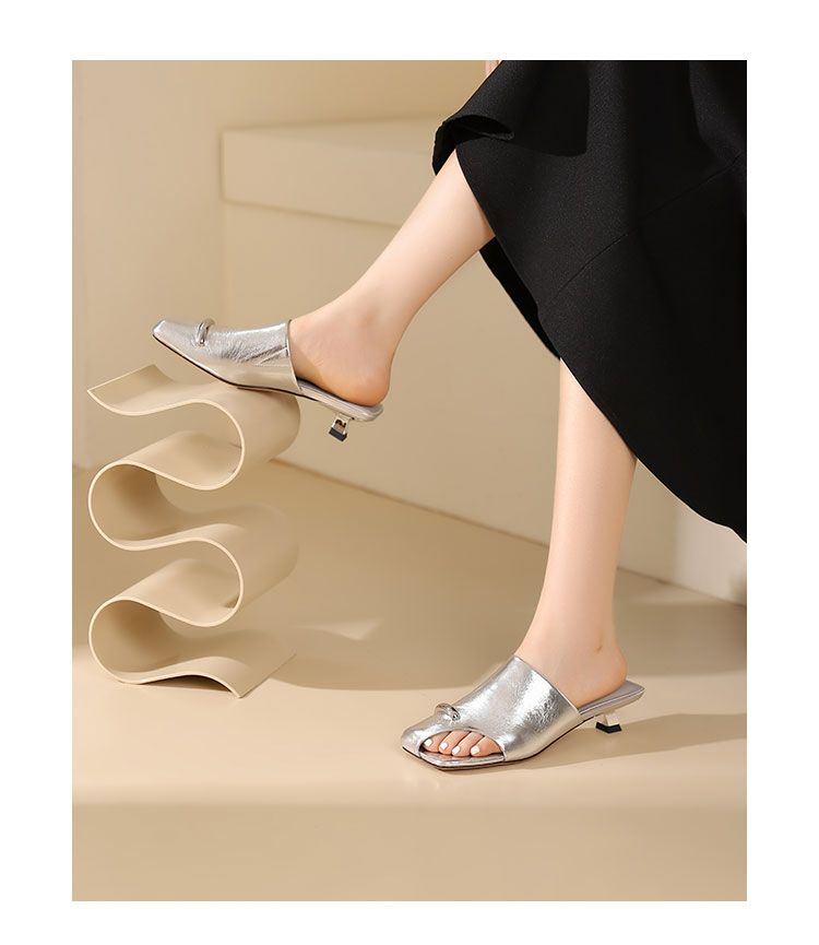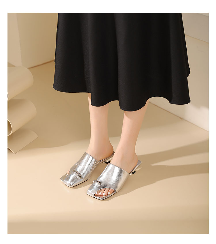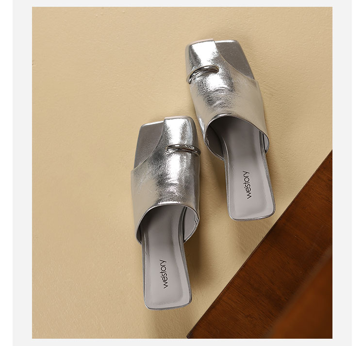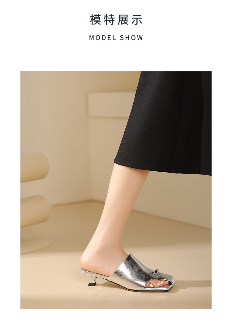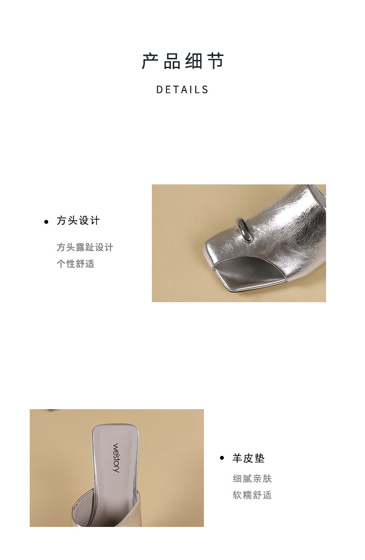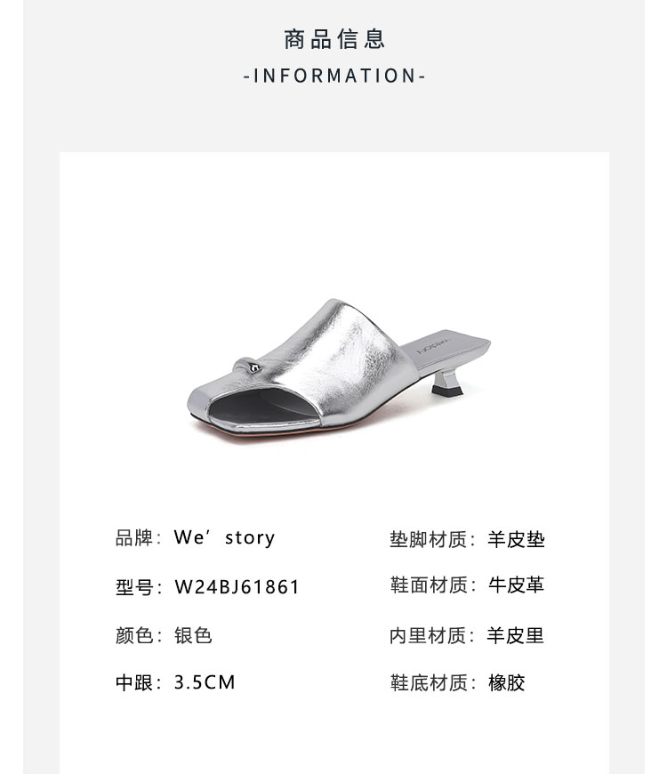 westory年夏季新款小中跟包头露趾纯色凉拖鞋W24BJ61861