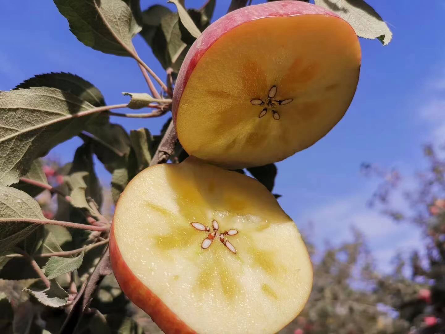 超甜阿克苏冰糖心苹果🍎脆甜多汁,超甜冰糖心,只有有机阿克苏才有这个口感,甜脆,带着新疆的尘土而来 它纯天然弱碱性沙质土壤培育,全年接受着天然雪山水的灌溉,造就了独特的口感