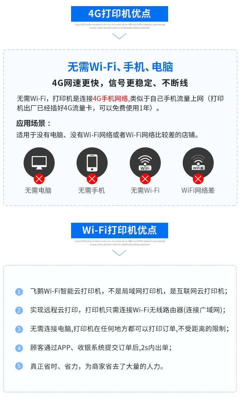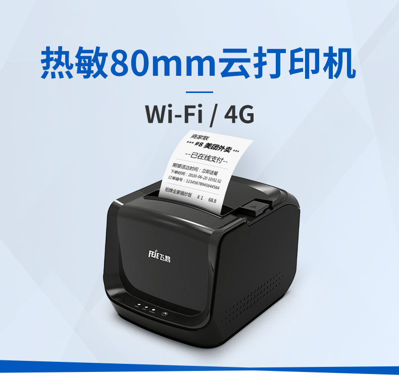 飞鹅WIFI热敏80mm美团外卖饿了么小程序扫码点餐厨房餐饮GPRS网口切刀远程无线云打印机