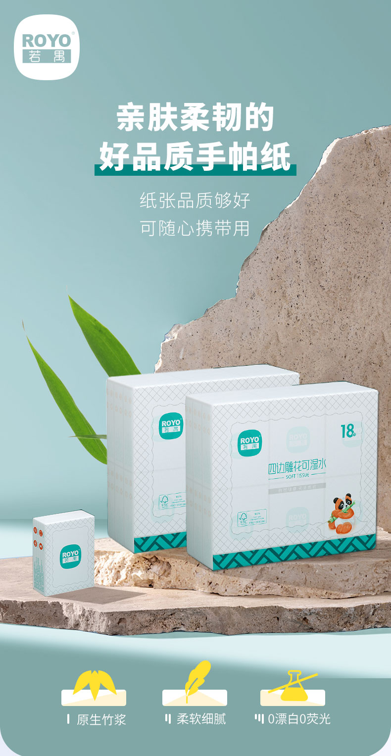 若禺手帕纸国潮竹柔系列4层加厚8片/包迷你纸原生竹浆湿水可用柔软亲肤1件18包1提RS1101