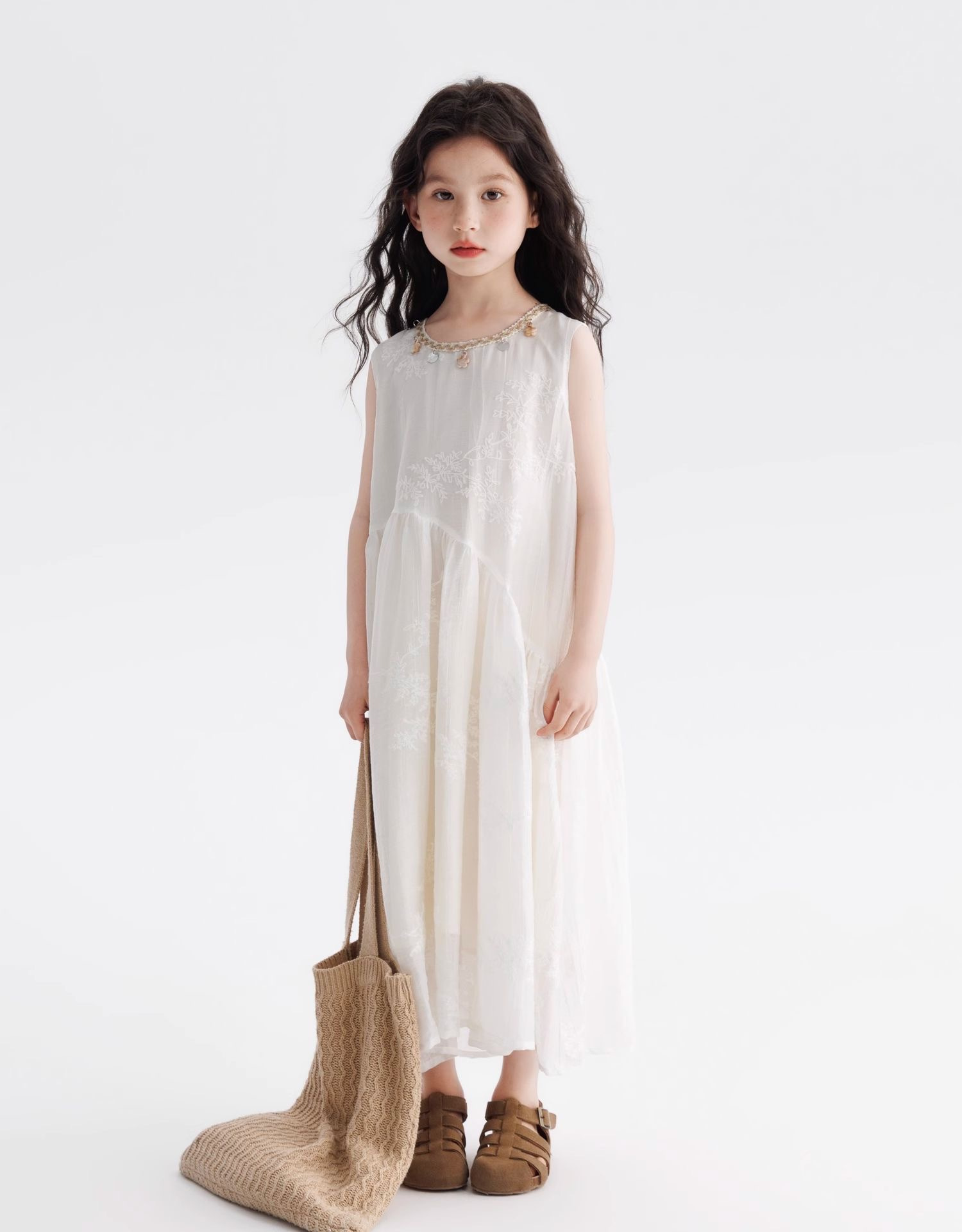 💰69元包邮, 领口定制贝壳花串 白月光浮雕刺绣 度假风连衣裙