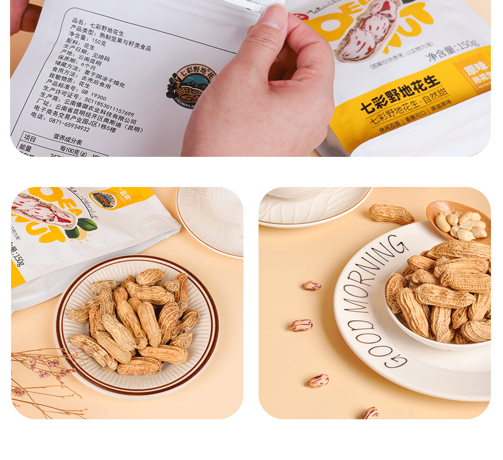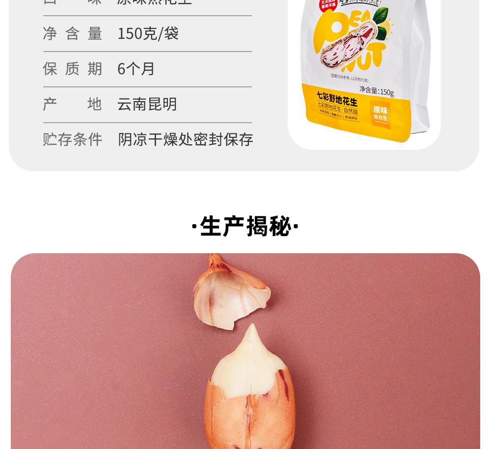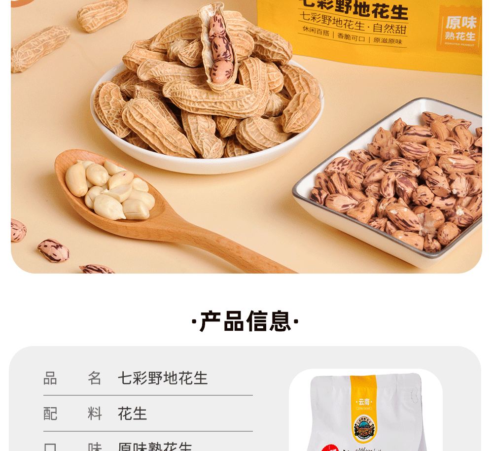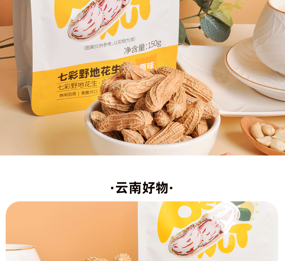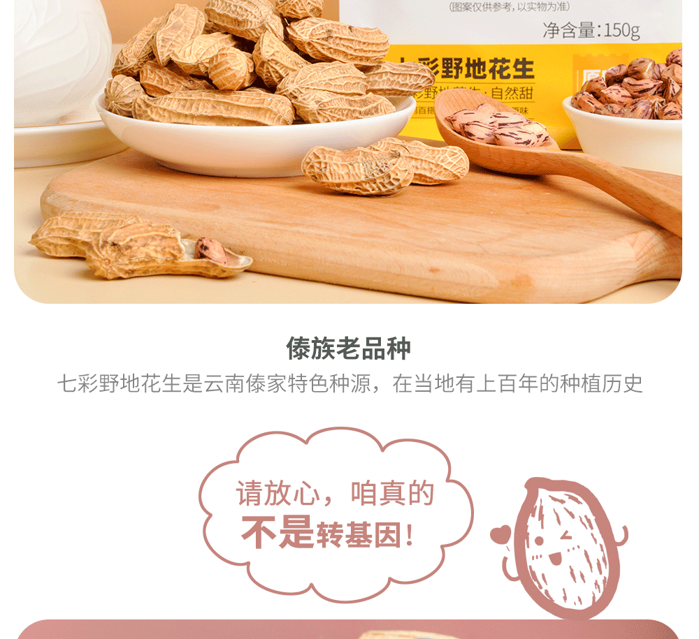 七彩野地熟花生150g/袋*2 炒货花生带壳原味口感香甜酥脆 云南土特产美食