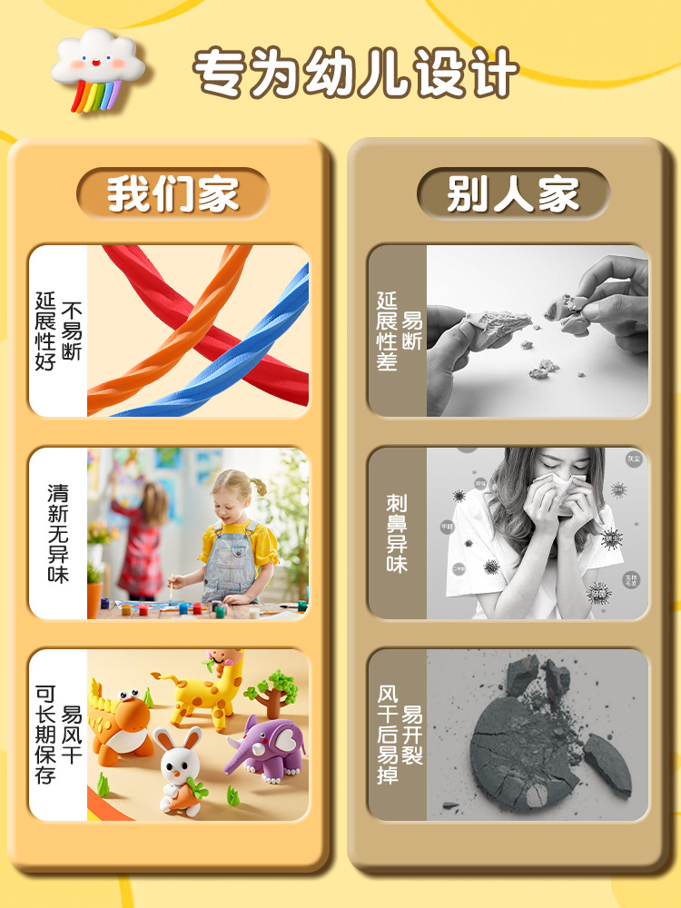 得力YC185超轻黏土袋装 儿童安全无毒粘土 24色幼儿园专用手工彩泥