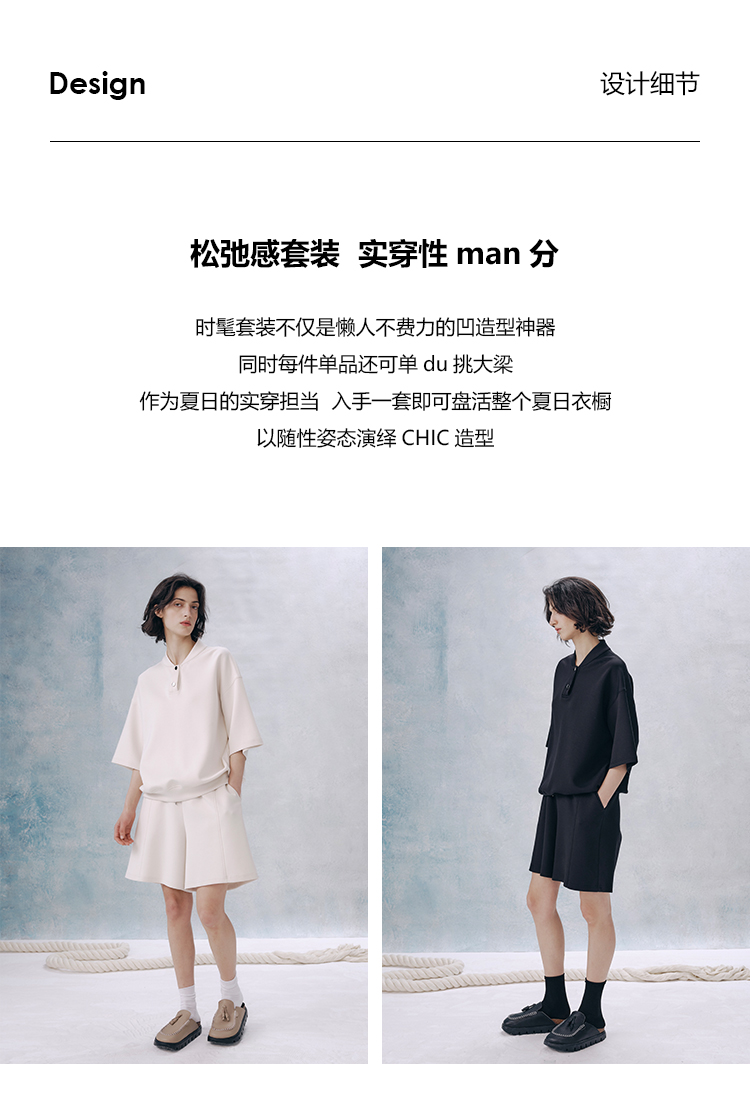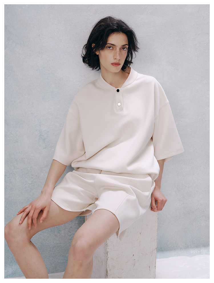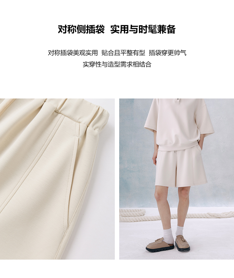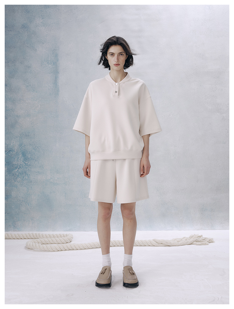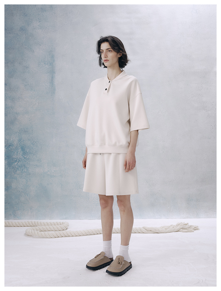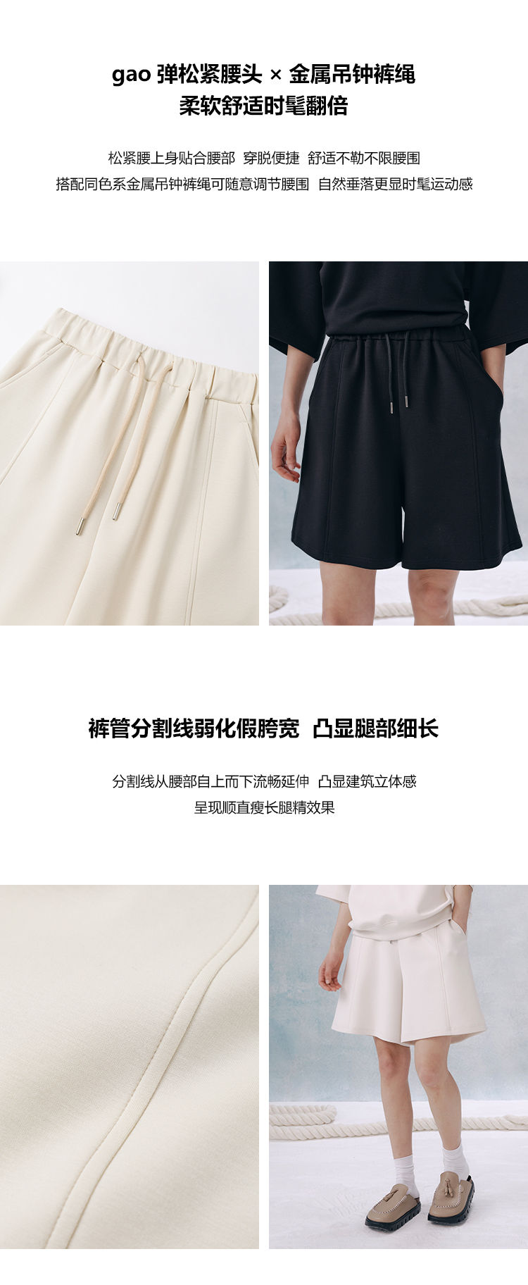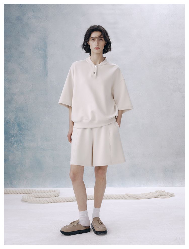 UMILAB【晨曦】柔软透气空气层松弛廓形短袖/松紧腰短裤套装E222M