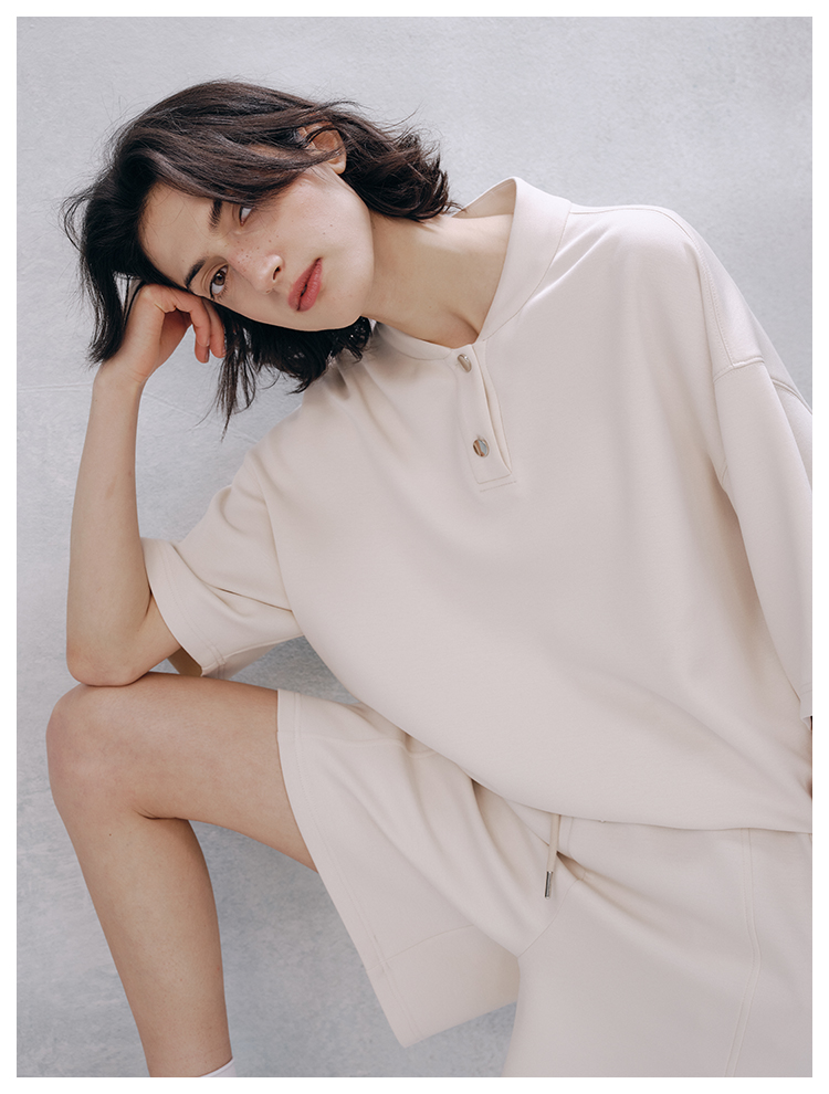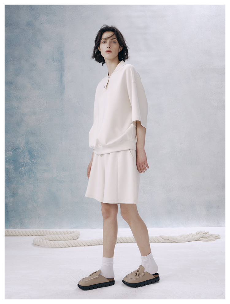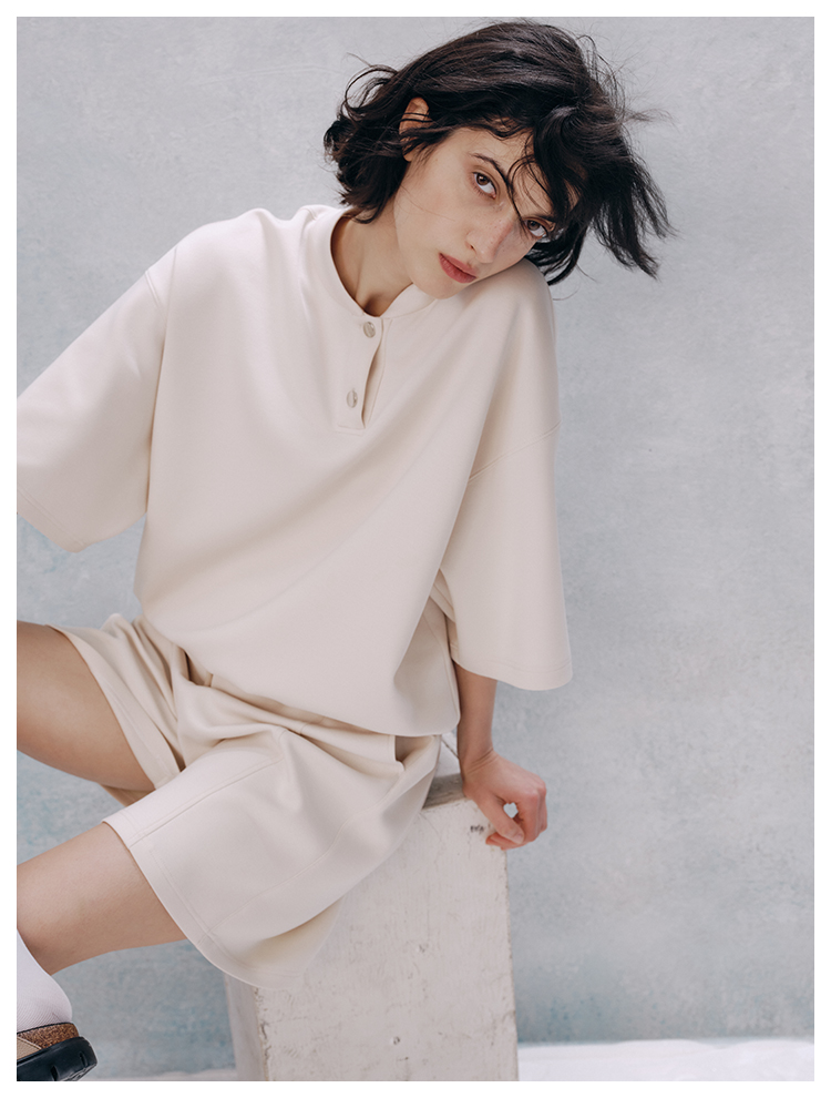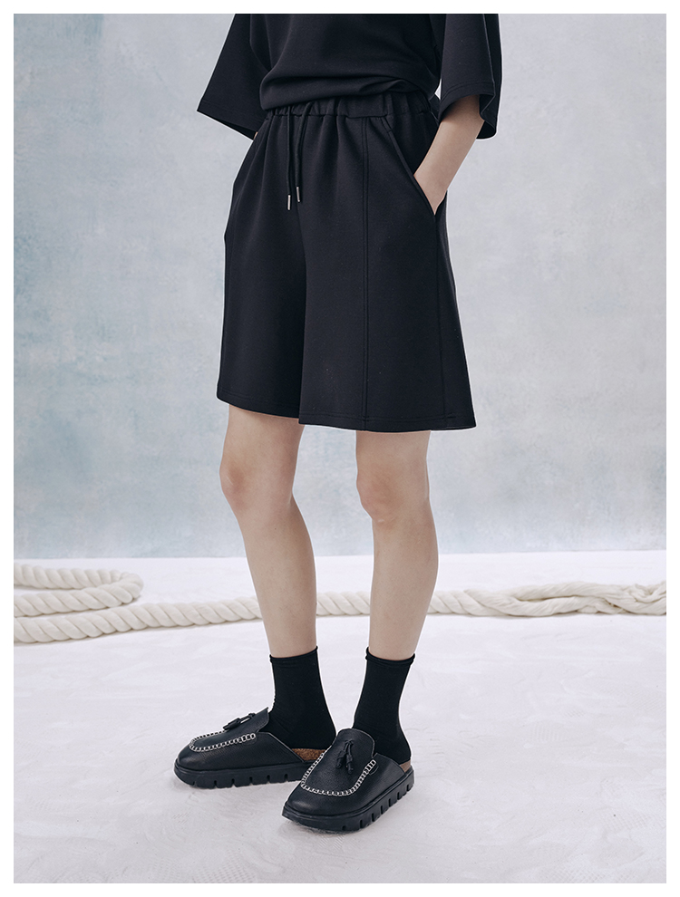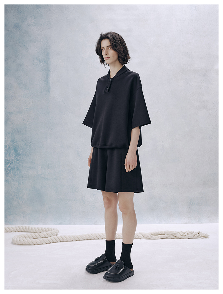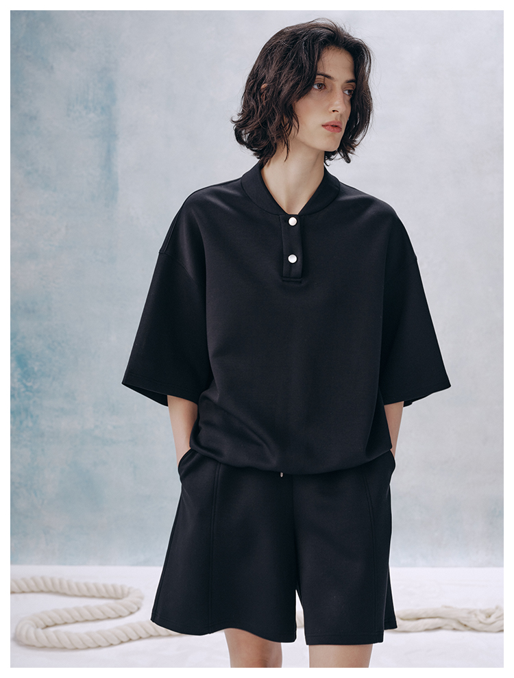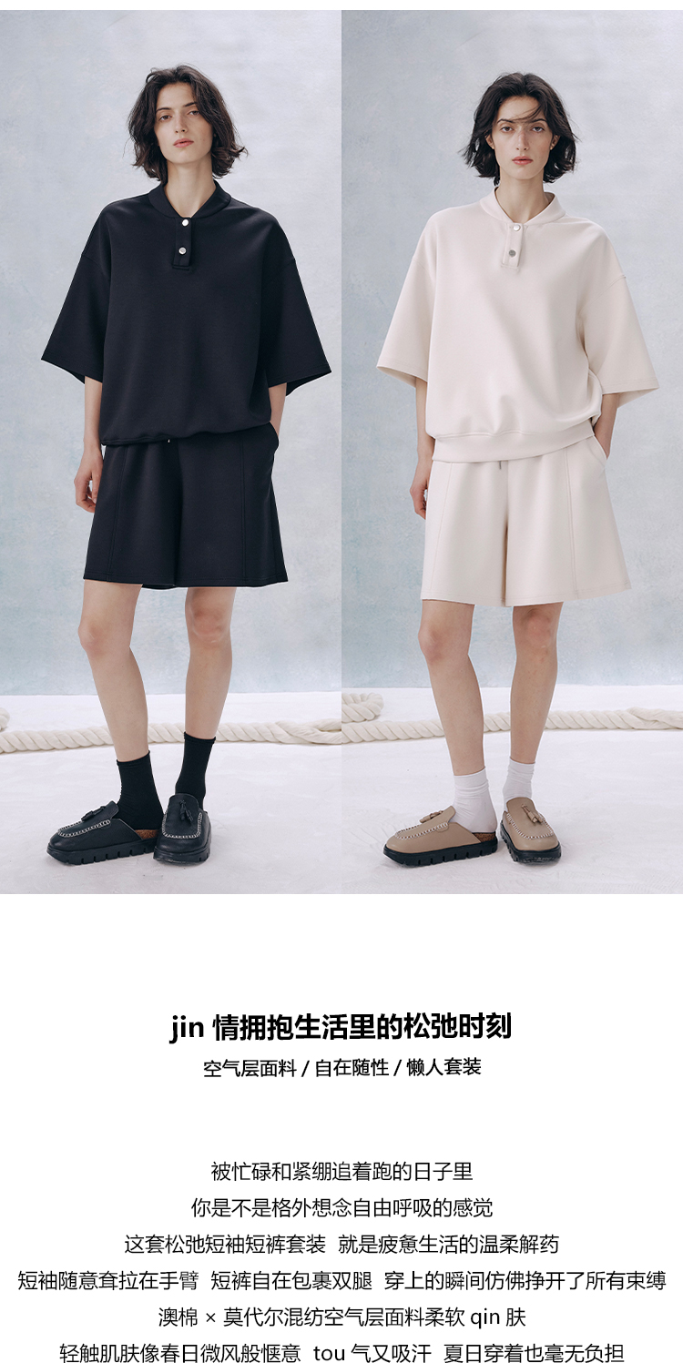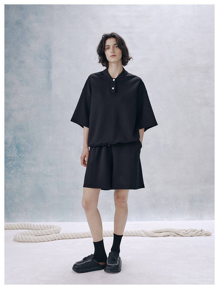 UMILAB【晨曦】柔软透气空气层松弛廓形短袖/松紧腰短裤套装E222M