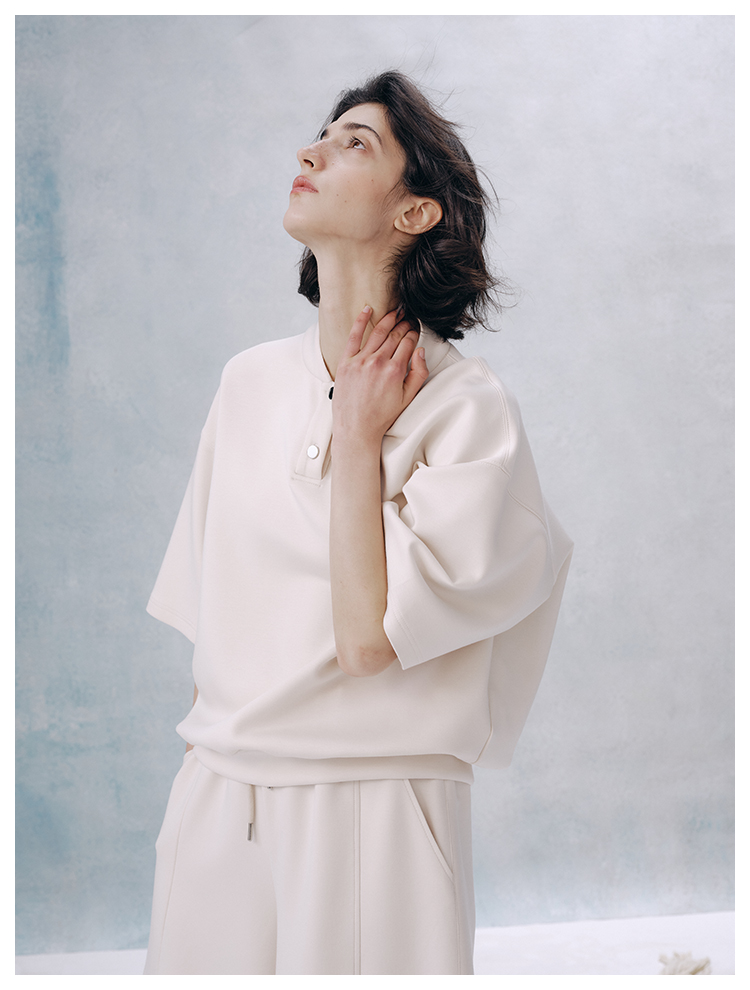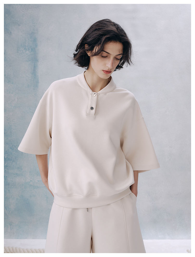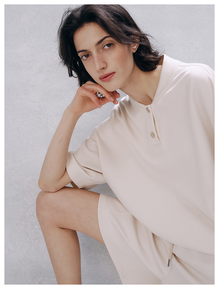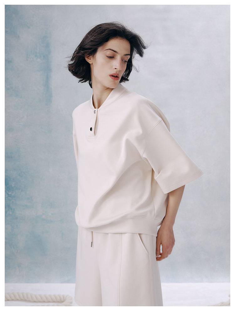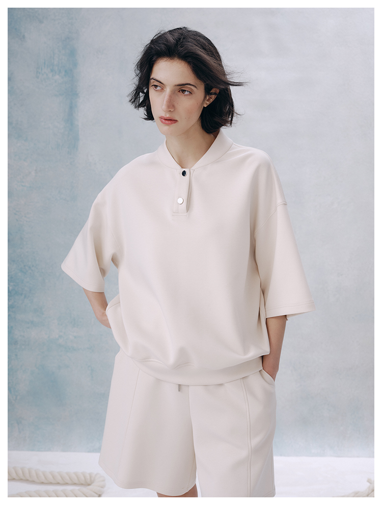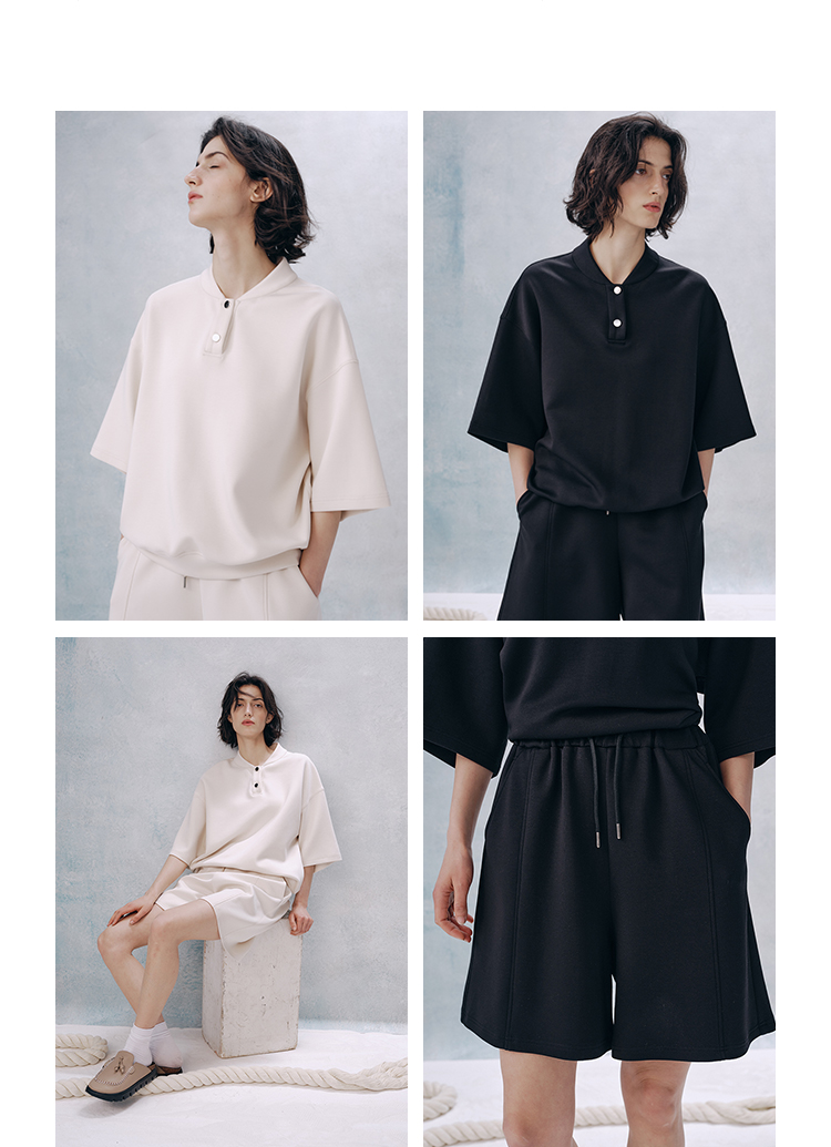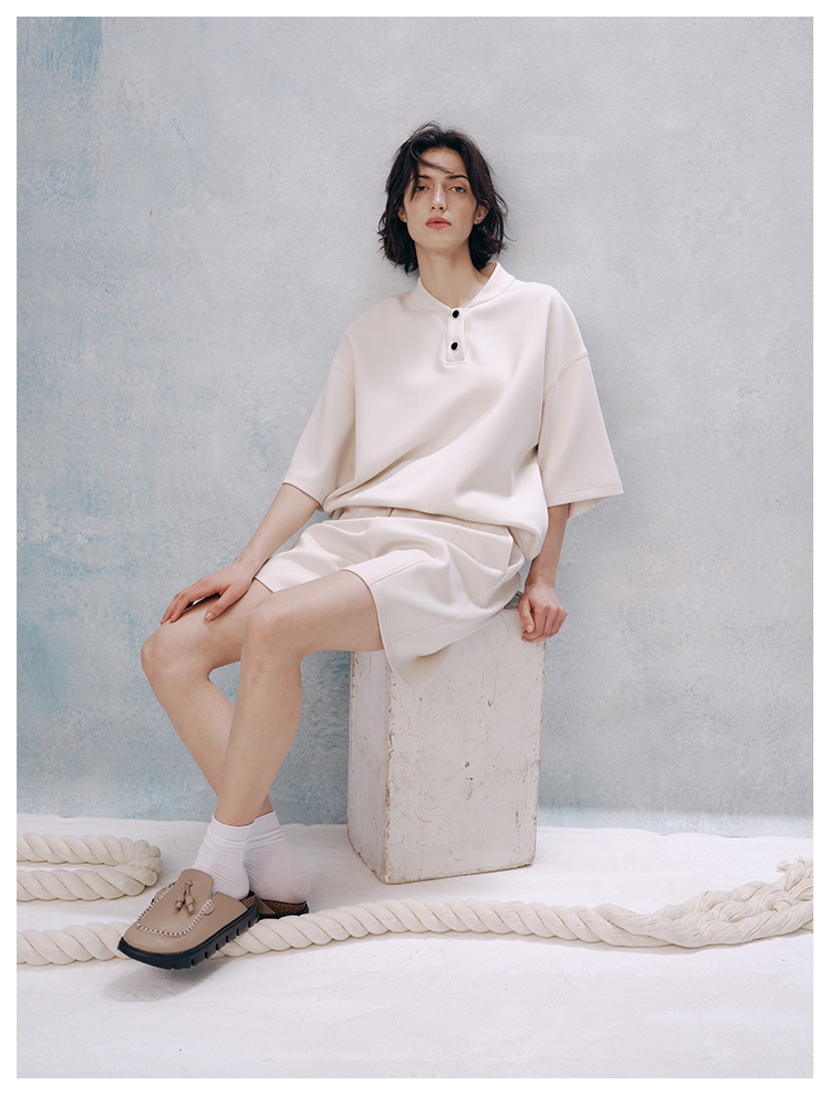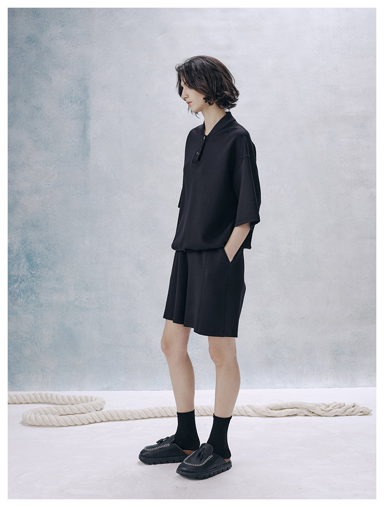 UMILAB【晨曦】柔软透气空气层松弛廓形短袖/松紧腰短裤套装E222M