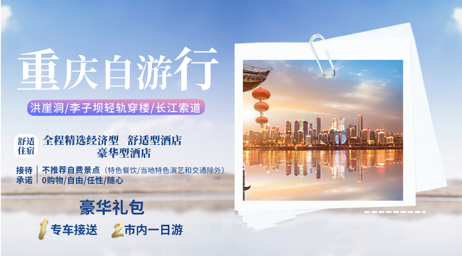 重庆自由行,专车接送到酒店,免费送市内一日游,还自己一个重庆之旅