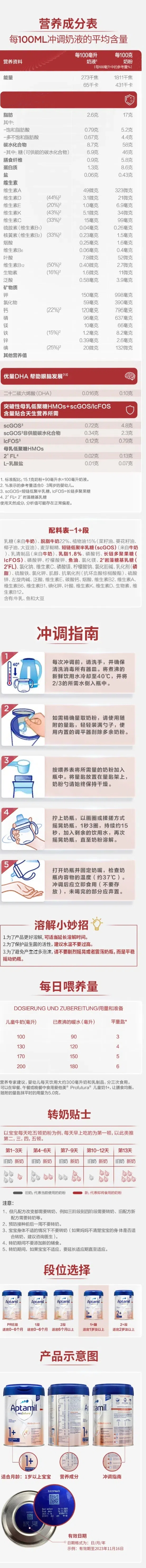 【不含税价跨境】德国Aptamil爱他美婴幼儿配方奶粉白金版1+段800g1-2岁