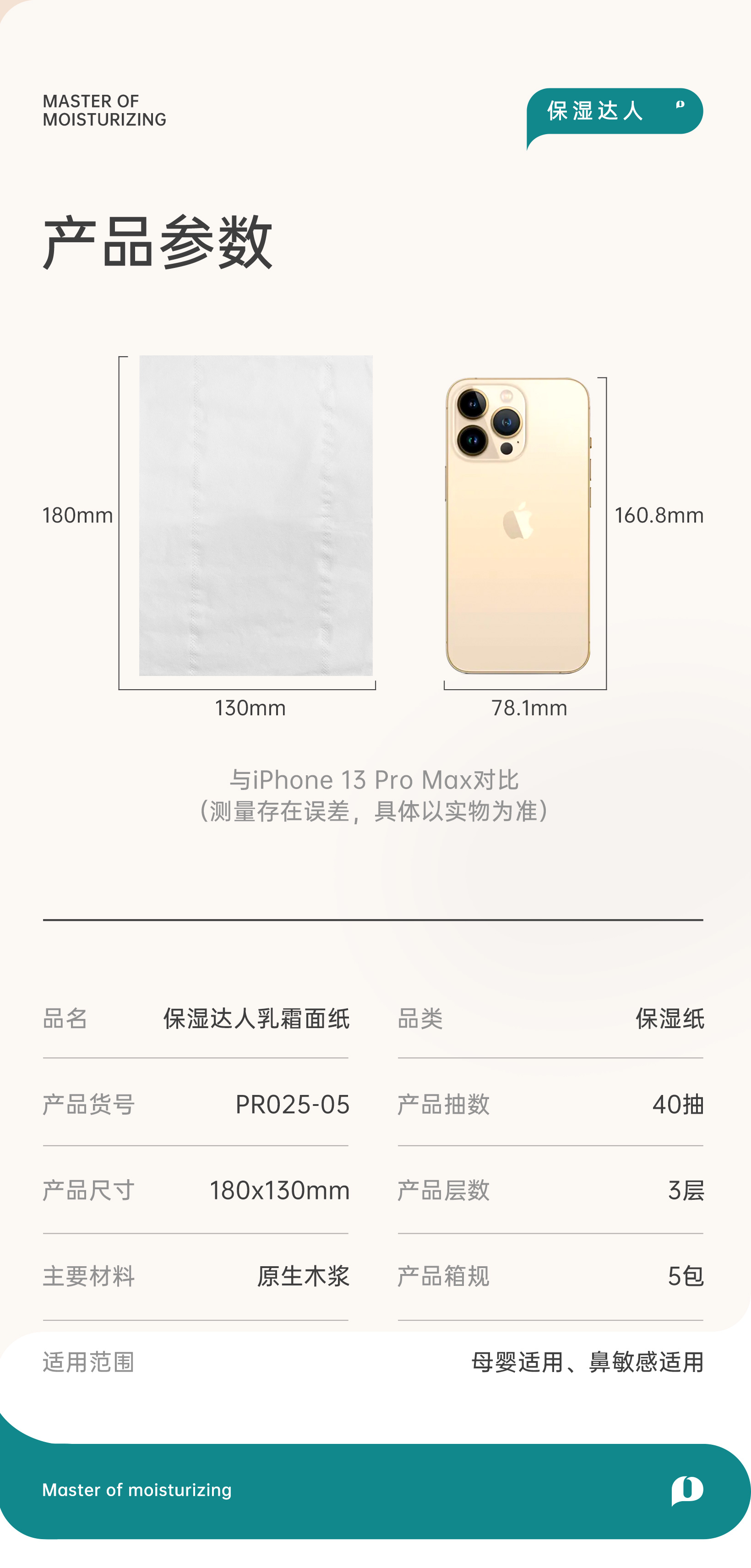 品萱 保湿达人系列 40抽5包 宝宝专用鼻子纸婴儿乳霜柔纸巾便携装