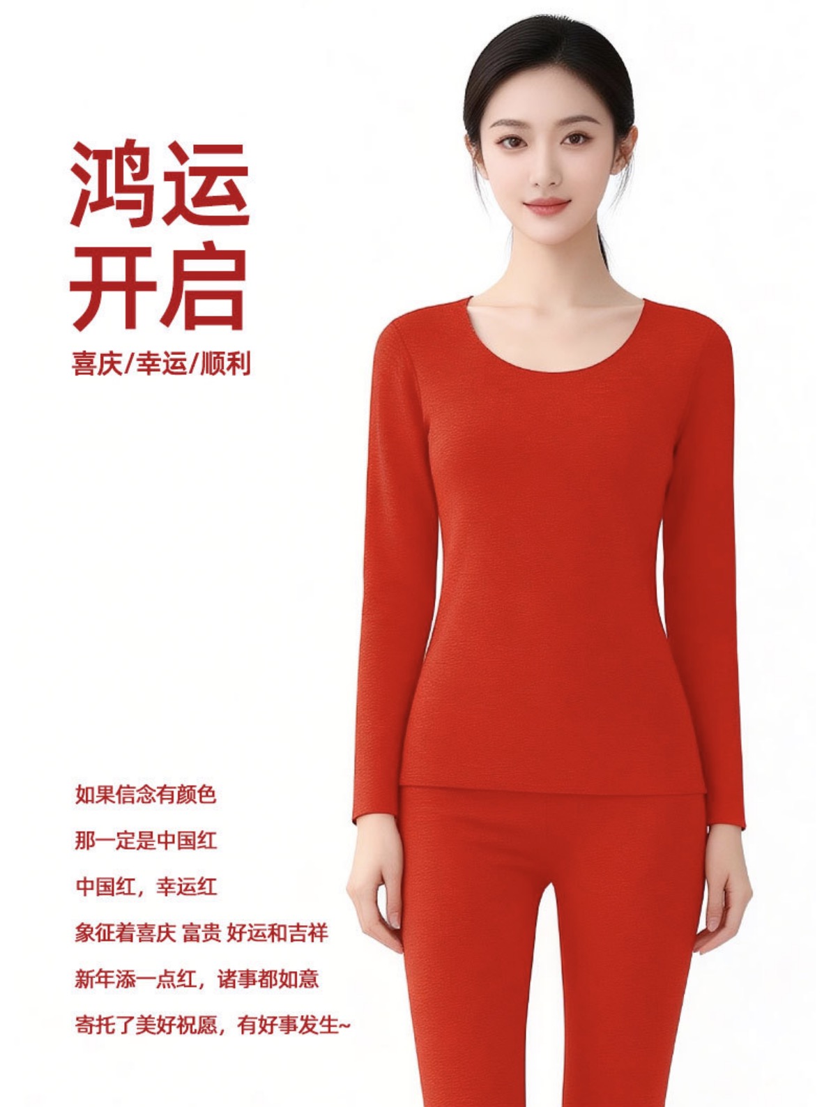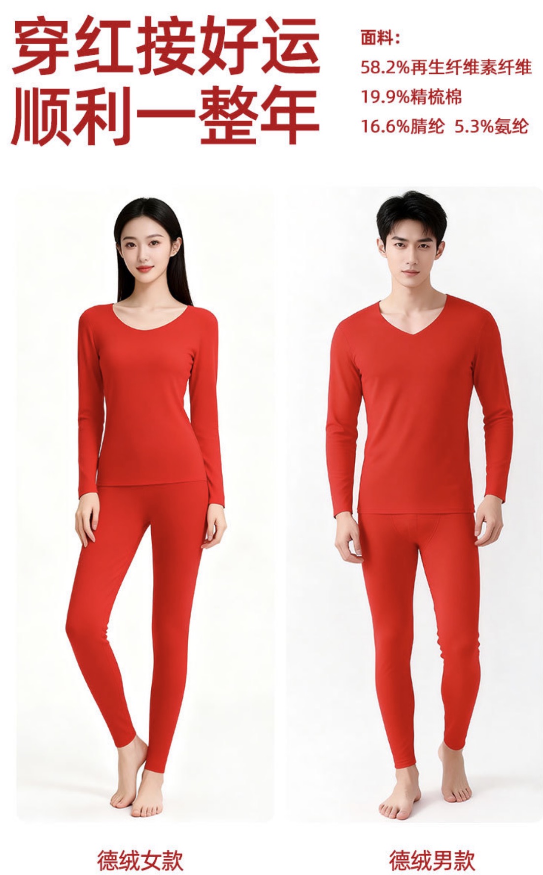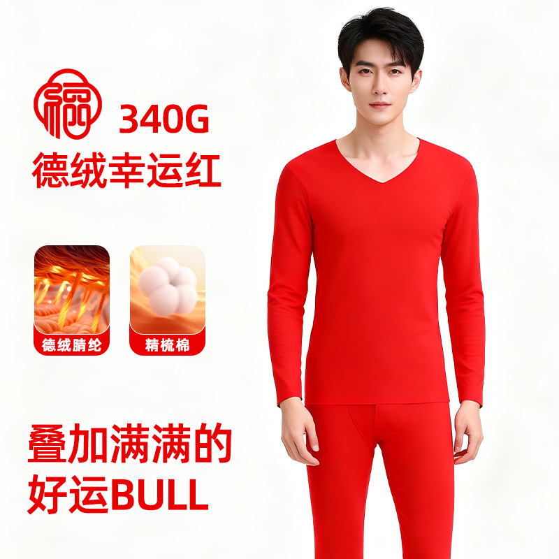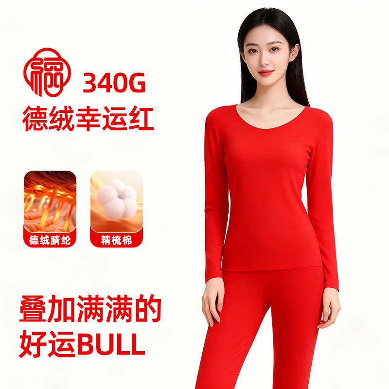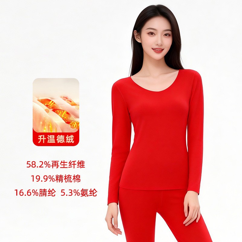 「新年福利」— —冬季本命红发热德绒红色保暖套装洛诗琳新款玻尿酸蚕丝蛋白 显瘦保暖情侣秋衣套装女(付款7天内发货)99551