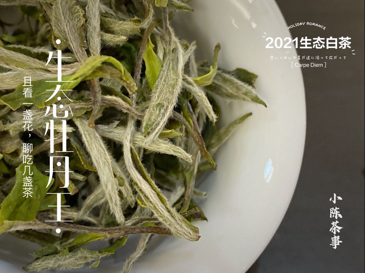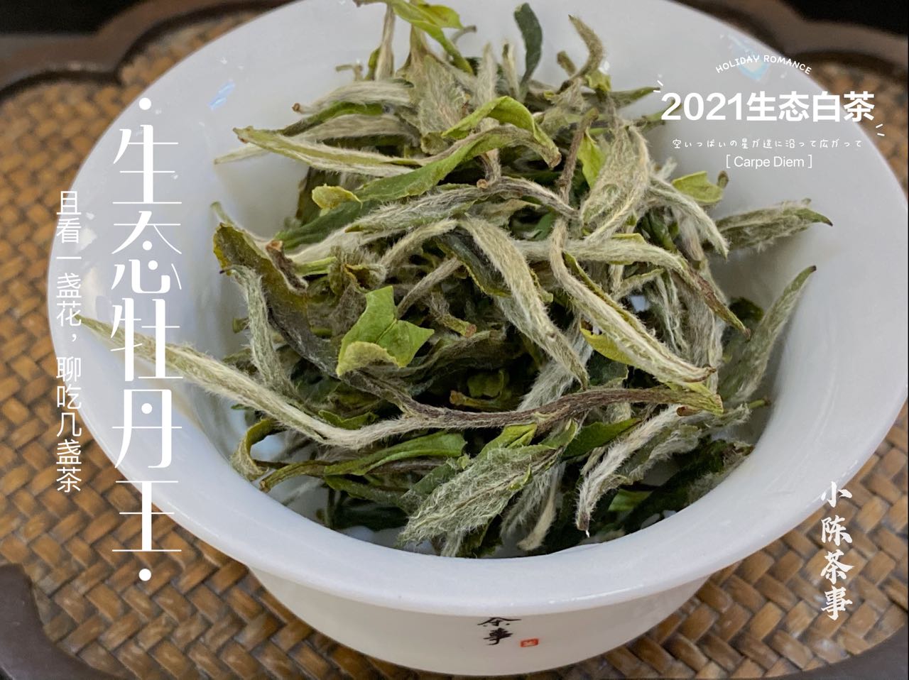 2021年的第三款春白茶,选择了这款出自小陈茶事自家生态有机茶园的2021生态牡丹王,这是小陈茶事的第二年生态有机茶了,2020年的生态银针、生态牡丹王、生态白牡丹和生态秋寿眉都得到了好评,收获众多的茶友拥怠。
