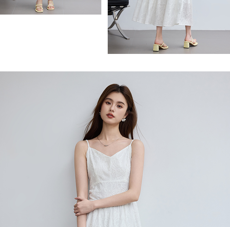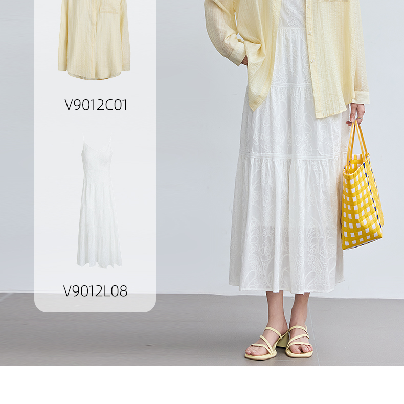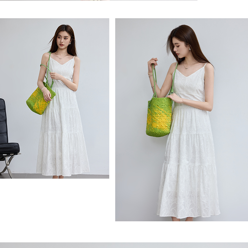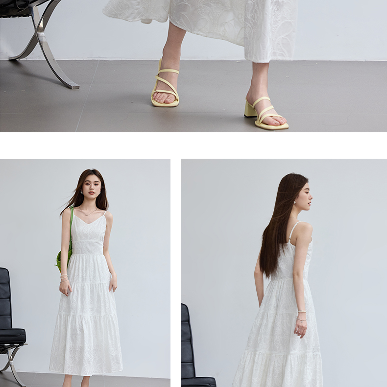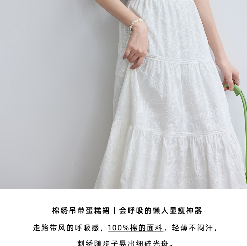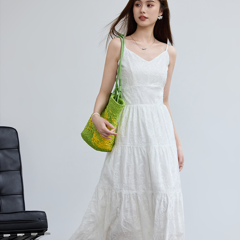 VICTORIA&VERA夏季“白月光”系列立体绣花V领吊带连衣裙蛋糕层次裙摆