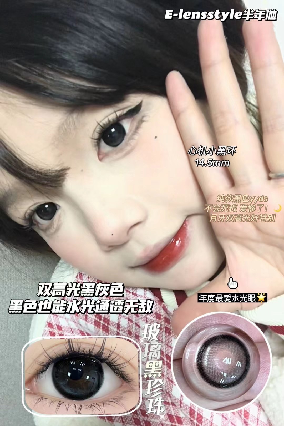 玻璃黑珍珠 直径14.5 染色直径13.8 基弧8.5 含水量40%