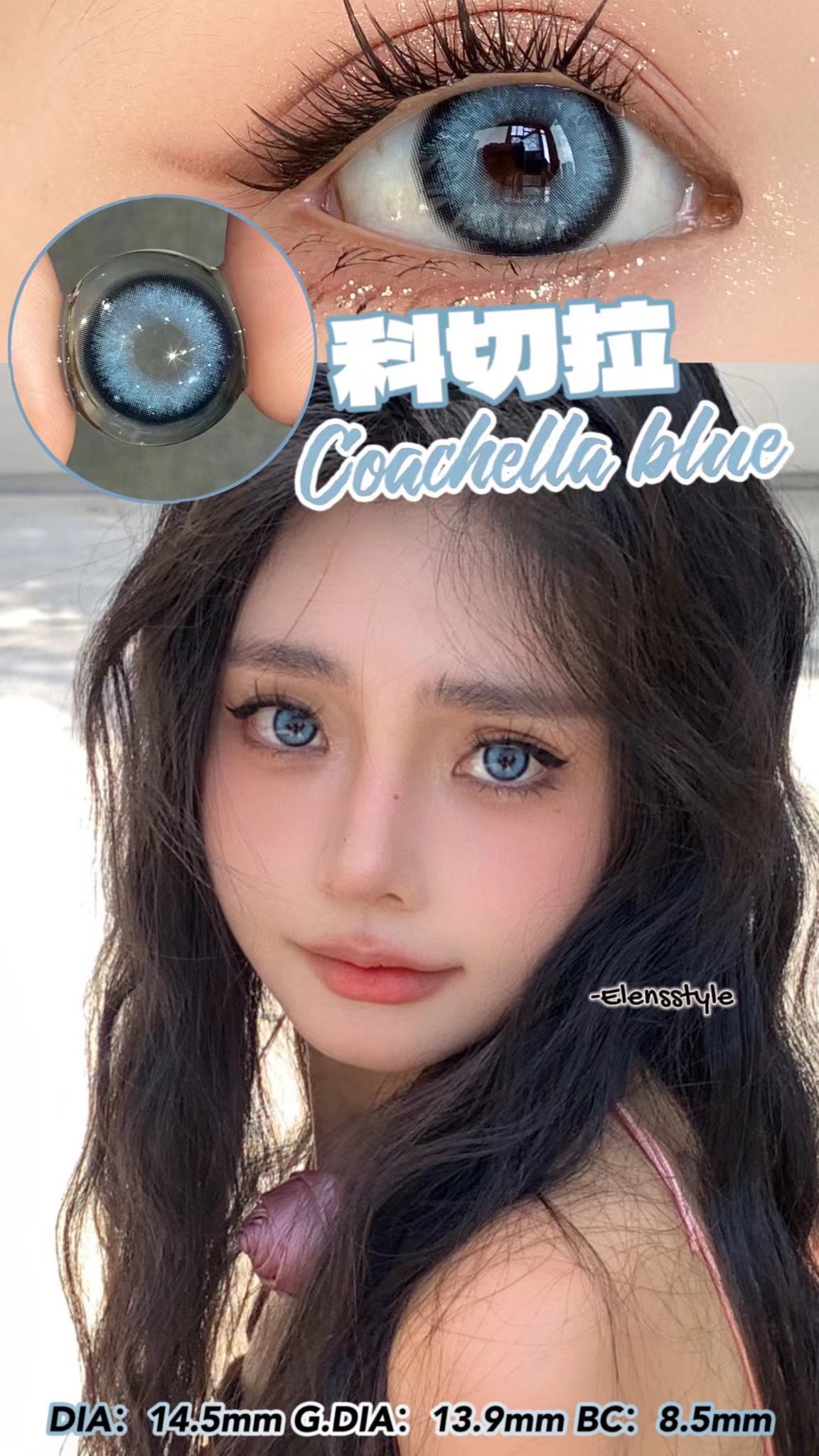 科切拉蓝 直径14.5 染色直径13.9基弧8.5含水量40%