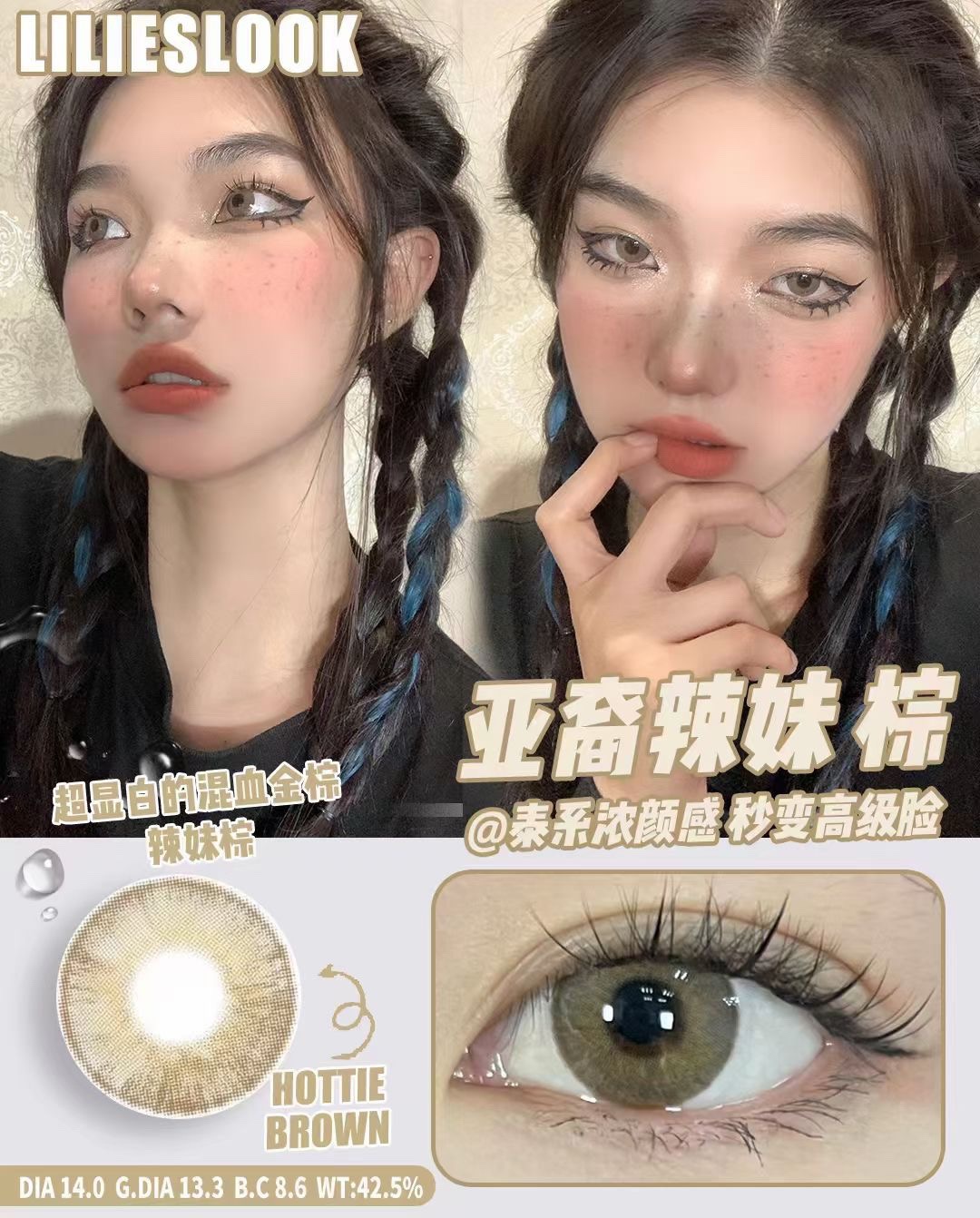 冰极棕 直径14.5 染色直径13.9基弧8.6含水量40%