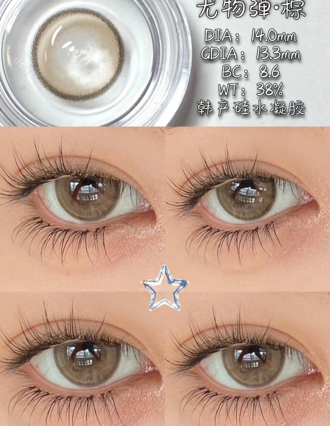 虚拟人类棕 直径14.5 染色直径13.8 基弧8.5 含水量40%
