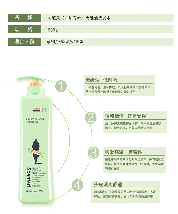 阿道夫无硅油洗发水(四项专研)500gJPY带授权招加盟代理