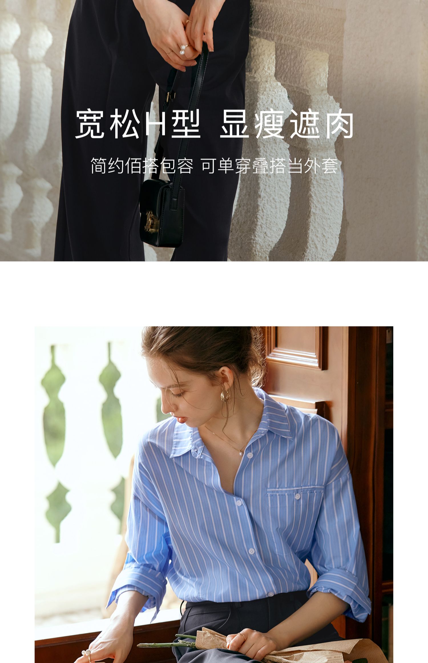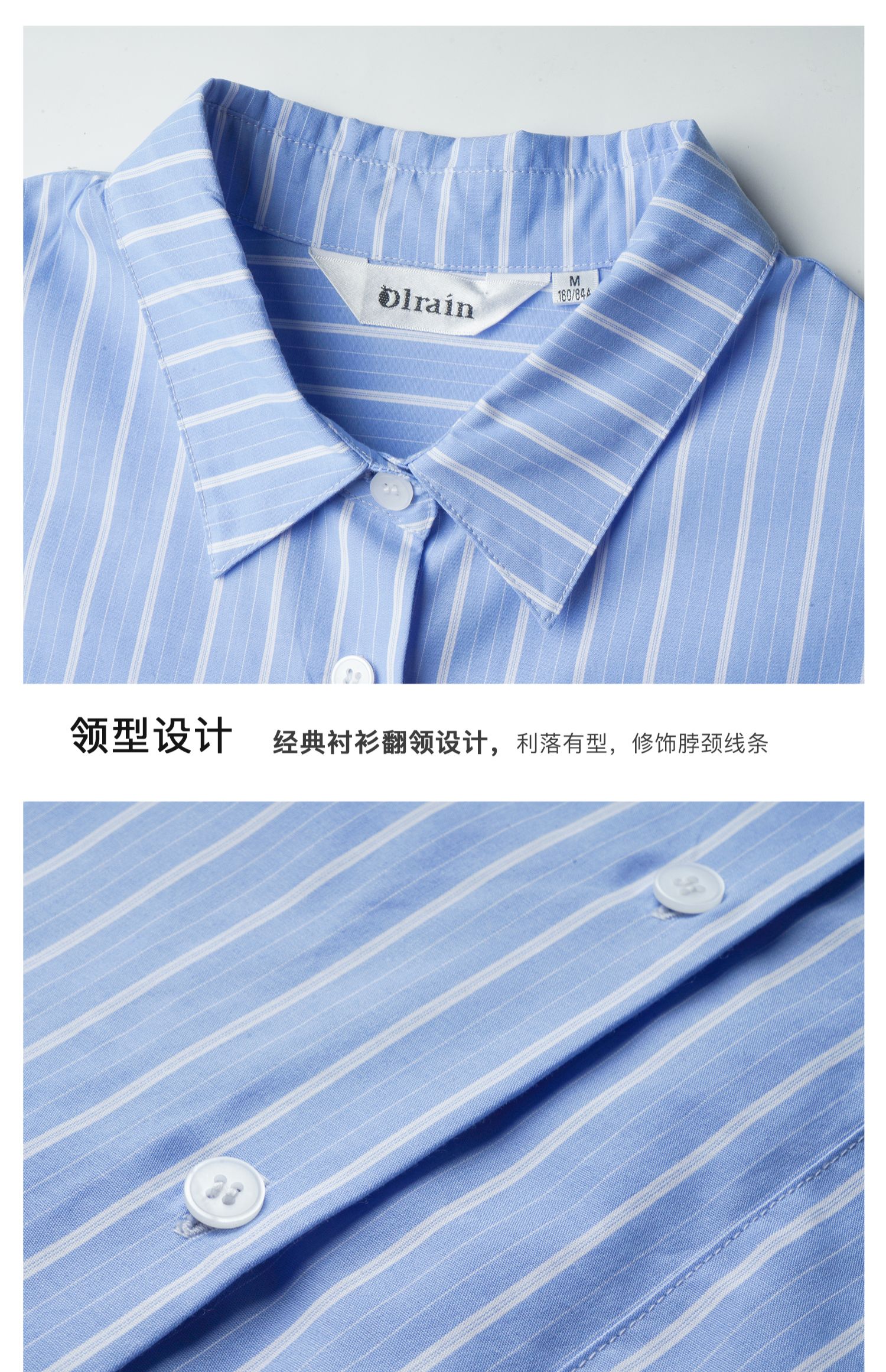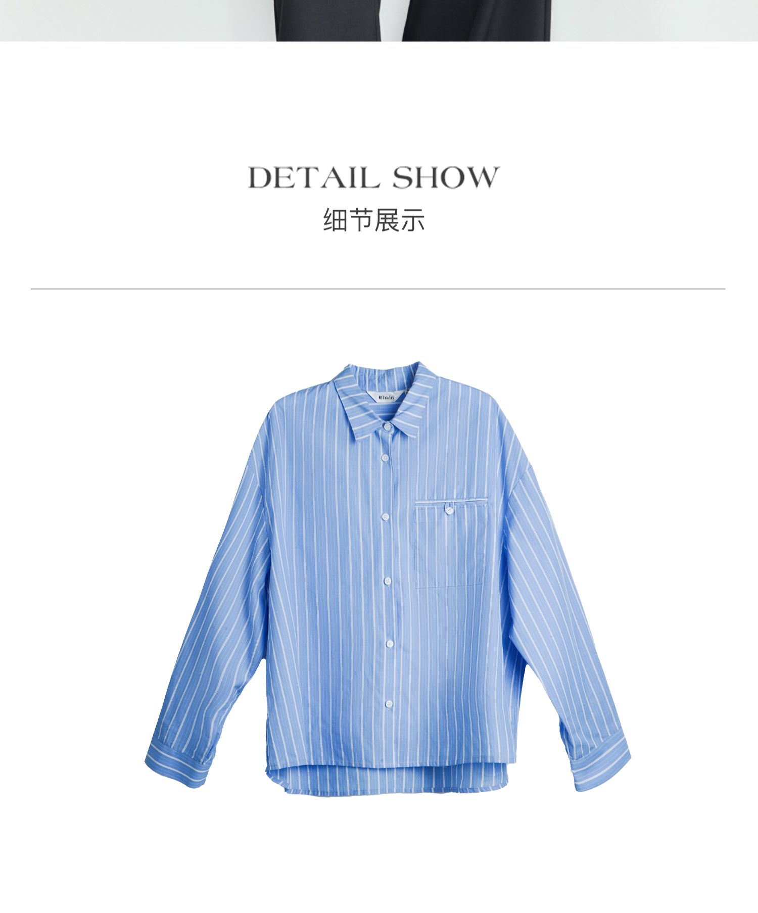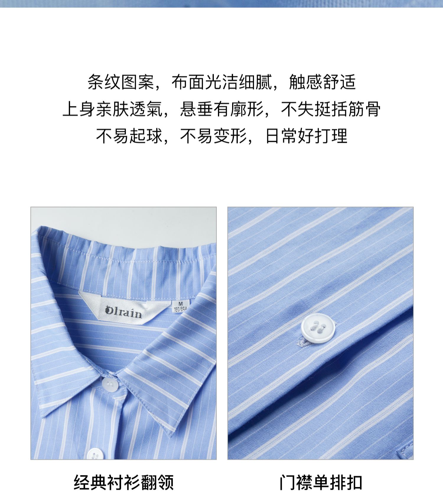 OLrain欧芮儿法式蓝色条纹衬衫女早秋慵懒风设计感宽松休闲衬衣