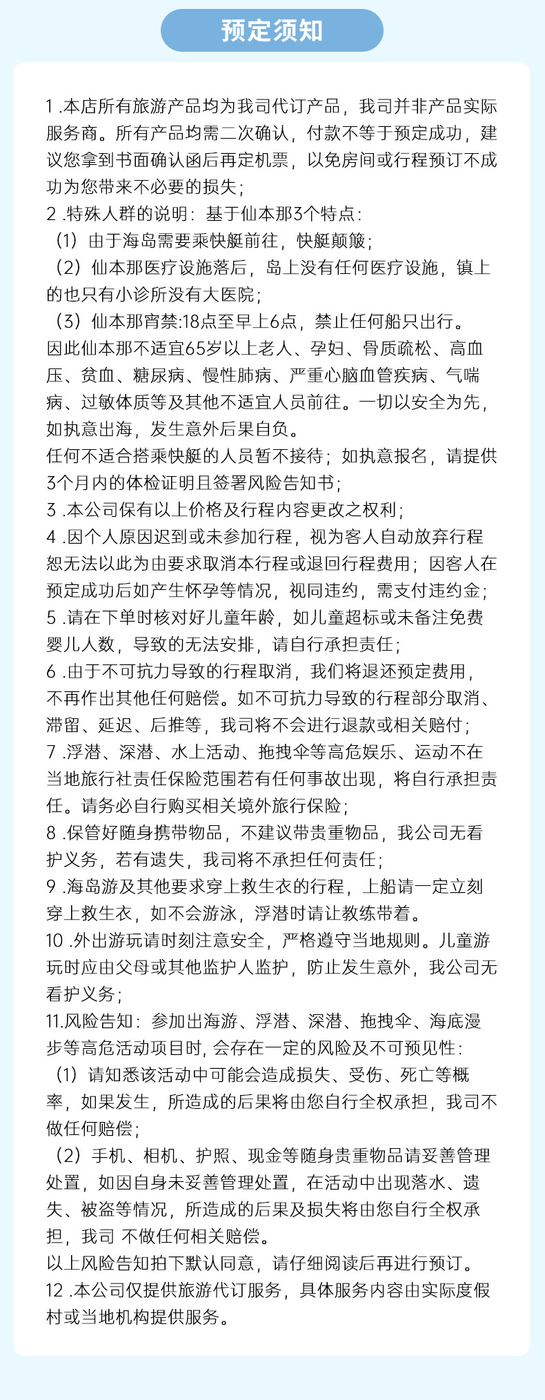 11. 本公司仅提供旅游代订服务,具体服务内容由实际度假村或当地机构提供服务。