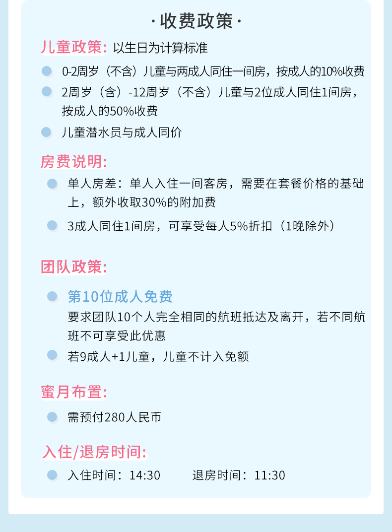 5. 请在下单时核对好儿童年龄,如儿童超标或未备注免费婴儿人数,导致的无法安排,请自行承担责任;