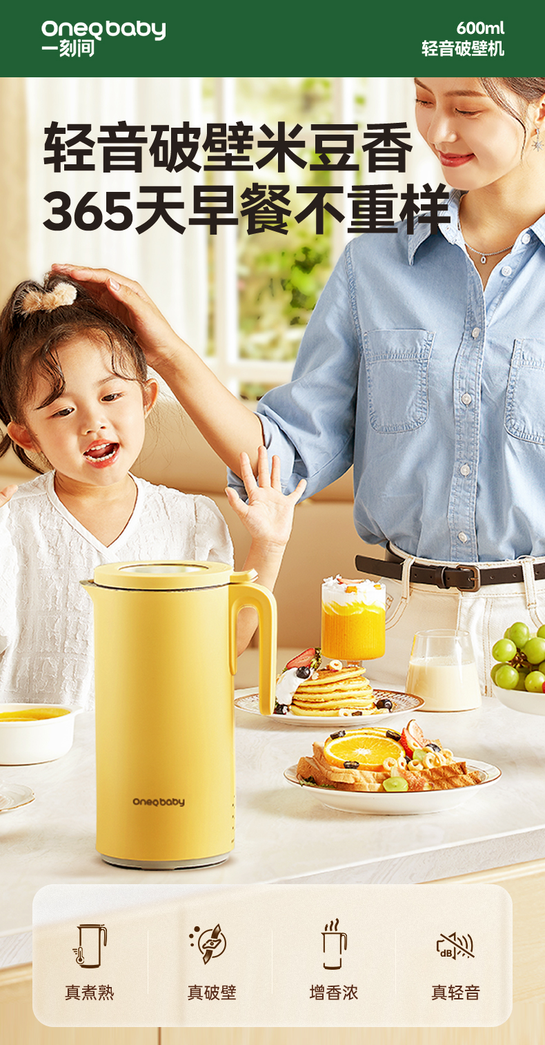 一刻间破壁机家用宝宝多功能保温五谷杂粮小型婴儿豆浆机YKJ006 下单发货免费发升级款