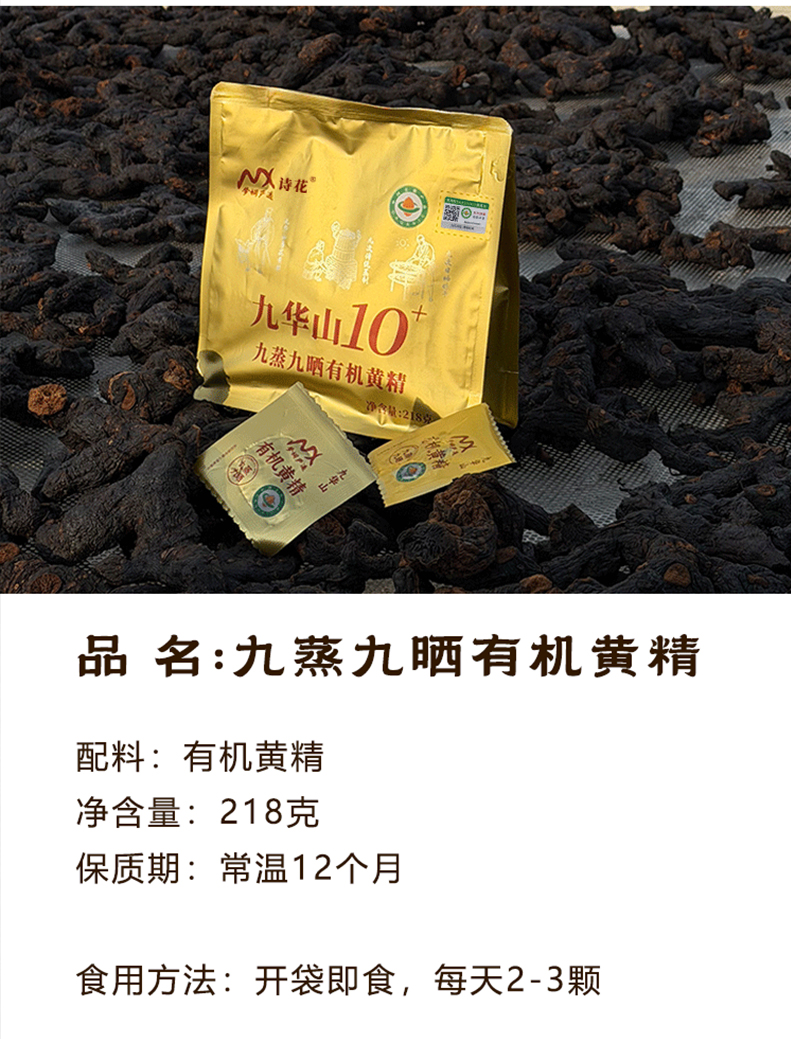 【活动!拍10送5!】10~12年九华山地道九蒸九晒有机黄精果218g/袋 ,“仙人余粮”,“北参南精”,提升精气神!药食同源的中药材黄精去除生黄精的刺激性成分,温和不上火易被人体吸收!