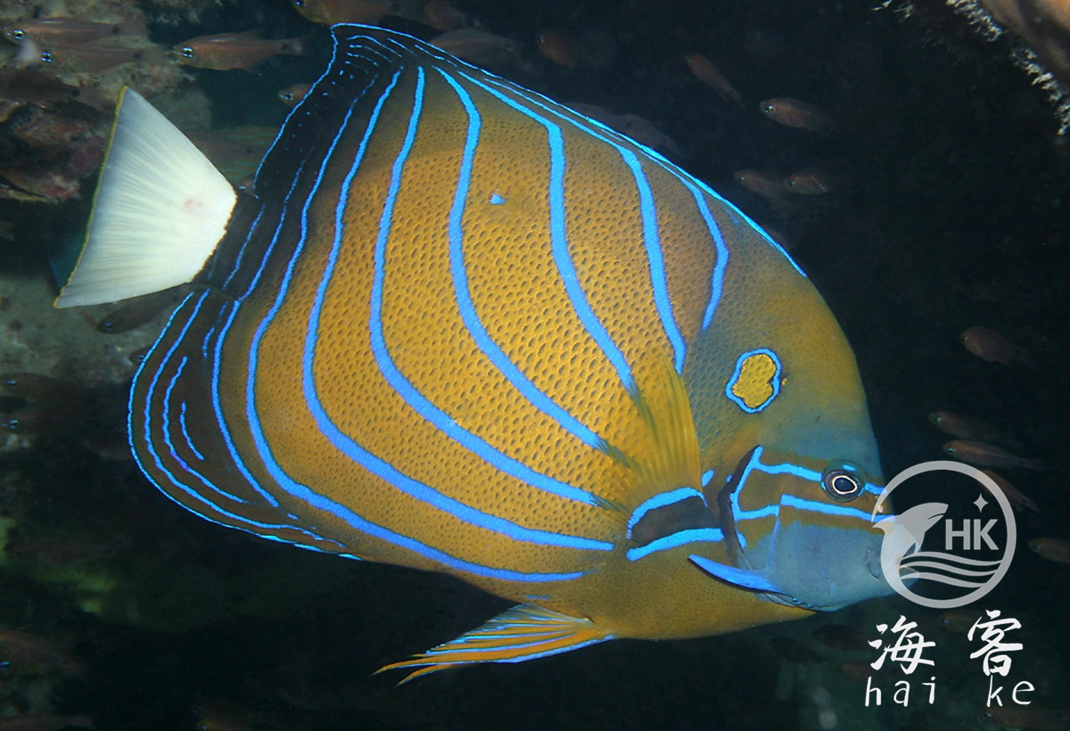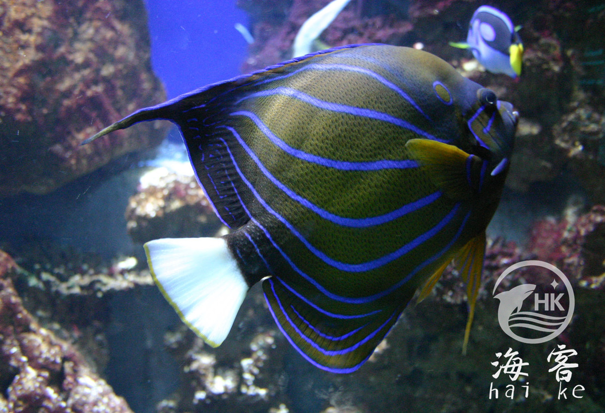也叫白尾﹑白尾蓝纹﹑蓝环。数条宝石蓝色条纹穿过褐色的身体直到蓝白色的尾部,幼鱼是蓝色带浅色条纹。