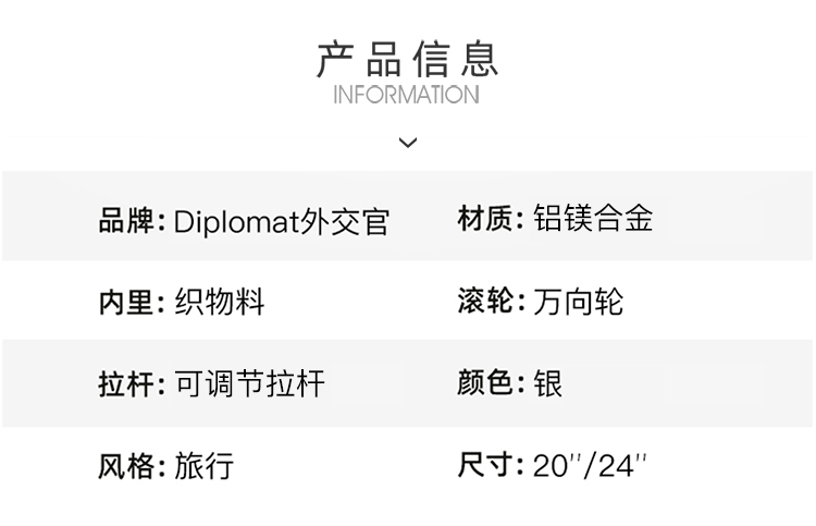 Diplomat外交官TL-2505系列镁铝合金行李箱20寸/24寸轻奢箱颜值出行