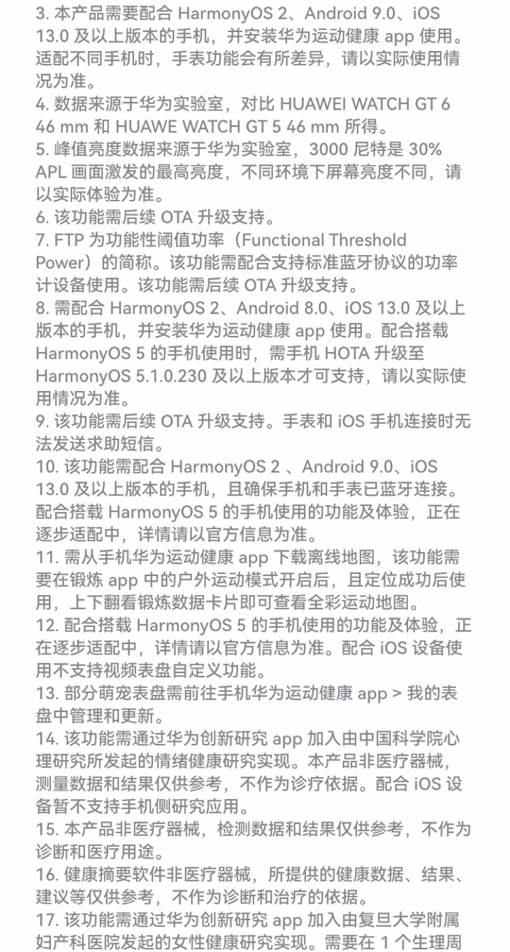 华为 WATCH GT 6 智能手表多维情绪健康全新骑行体验21天超长续航华为GT6手表GT5升级